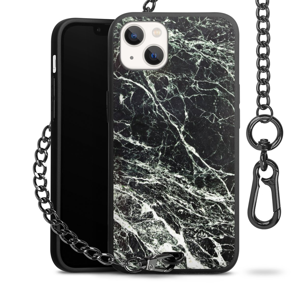 - Mattschwarze Handyhülle mit Metallkette