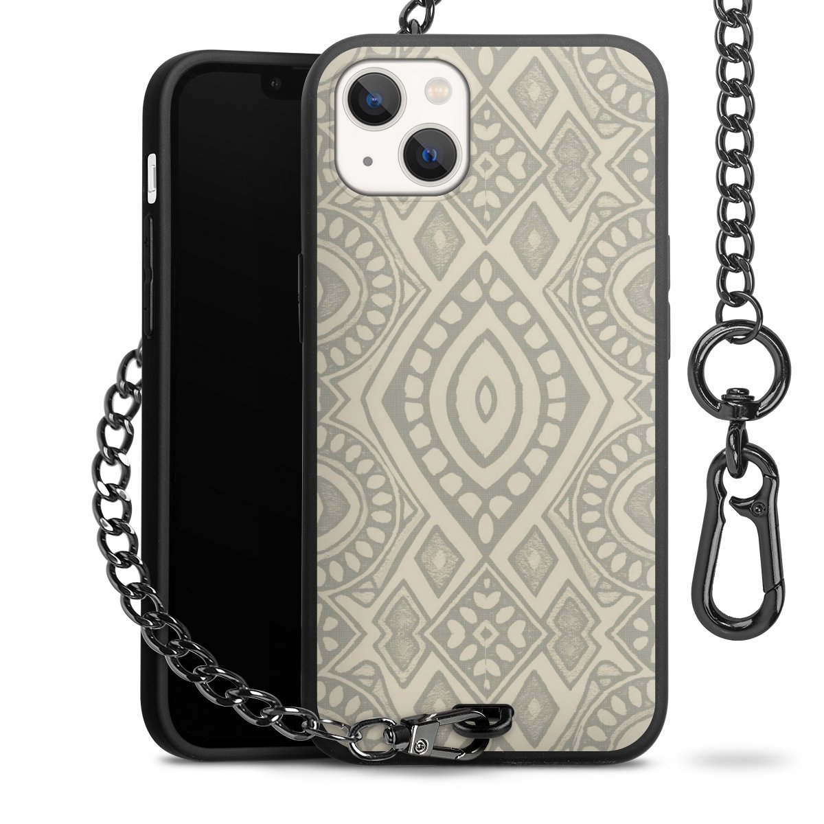 • Mattschwarze Handyhülle mit Metallkette