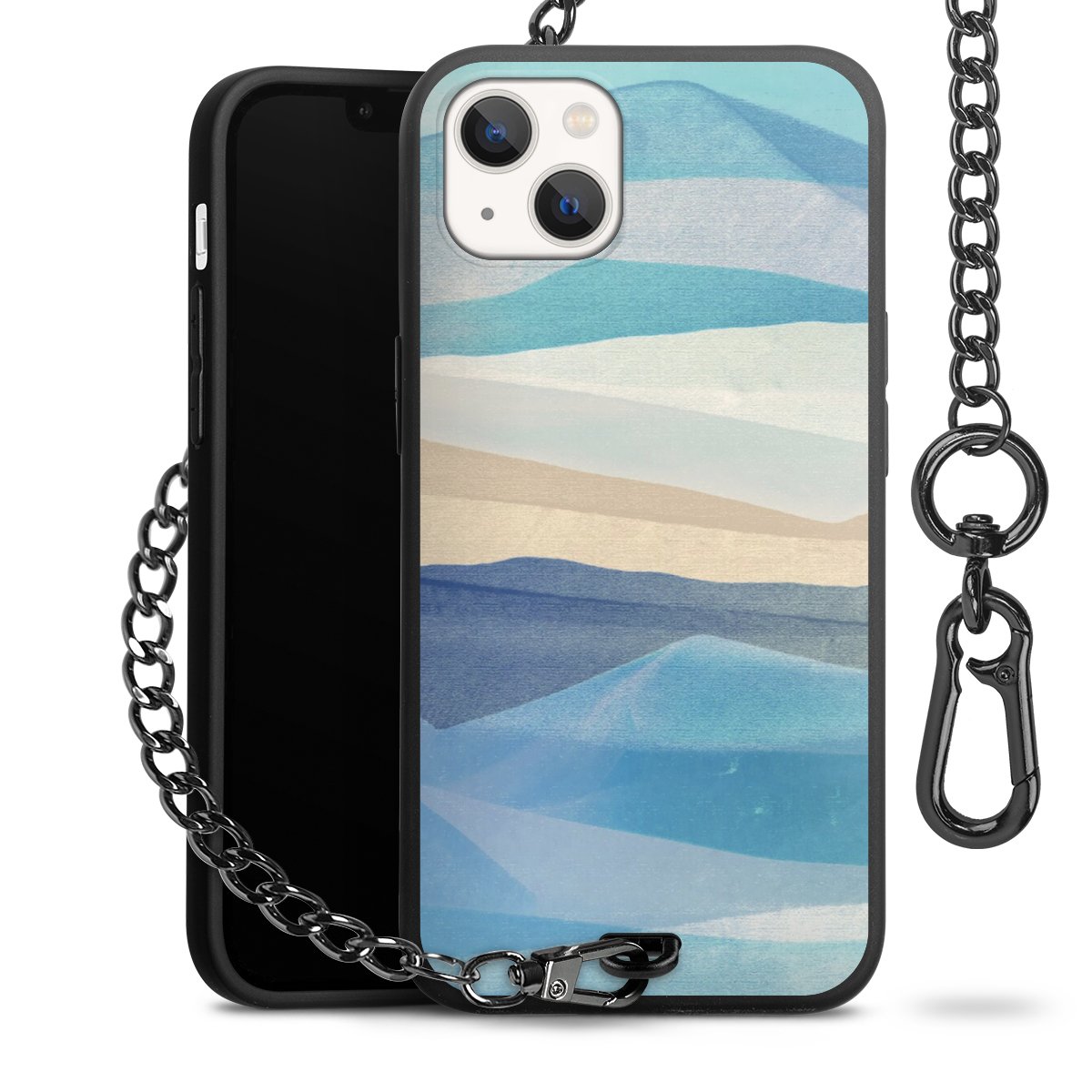 • Mattschwarze Handyhülle mit Metallkette
