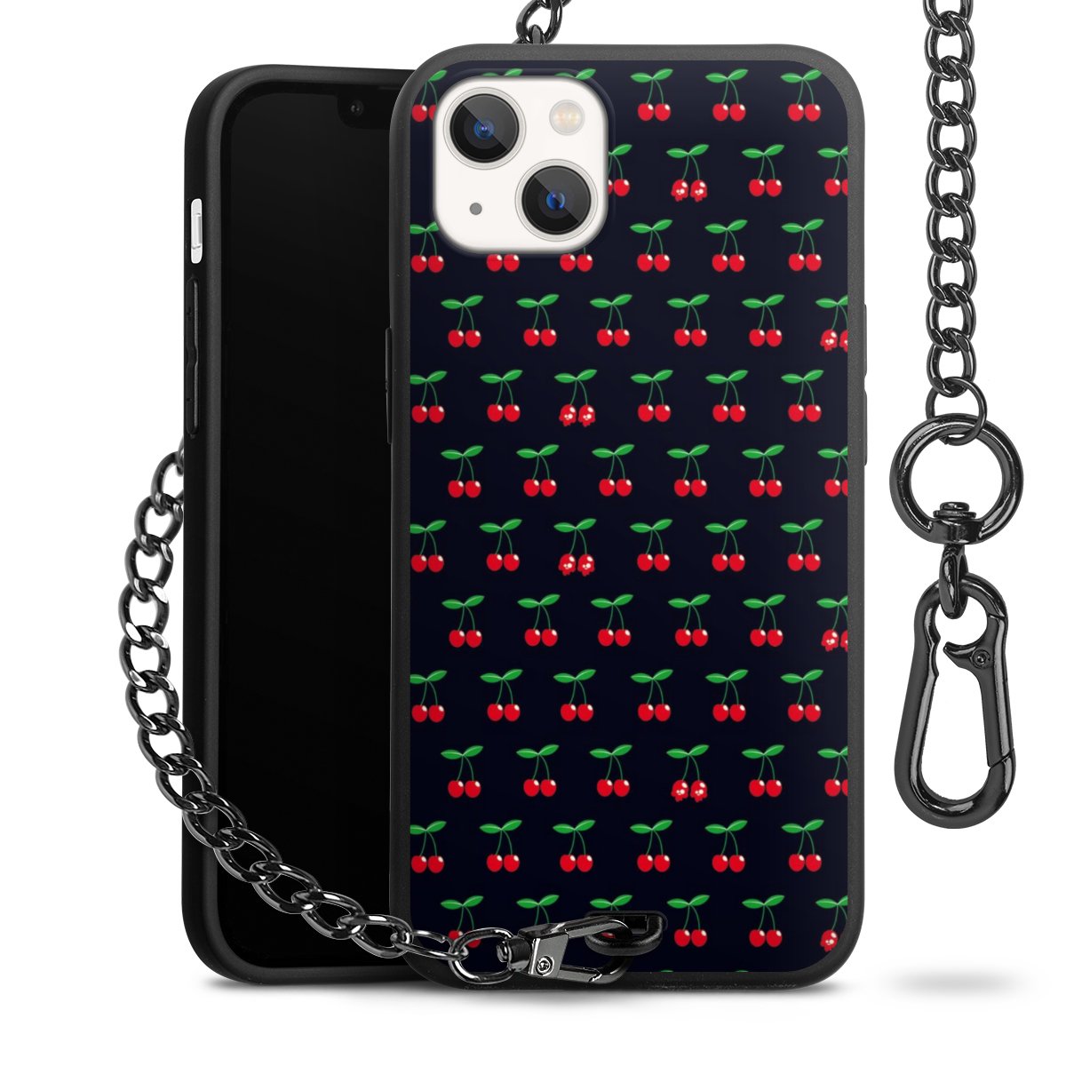 - Mattschwarze Handyhülle mit Metallkette