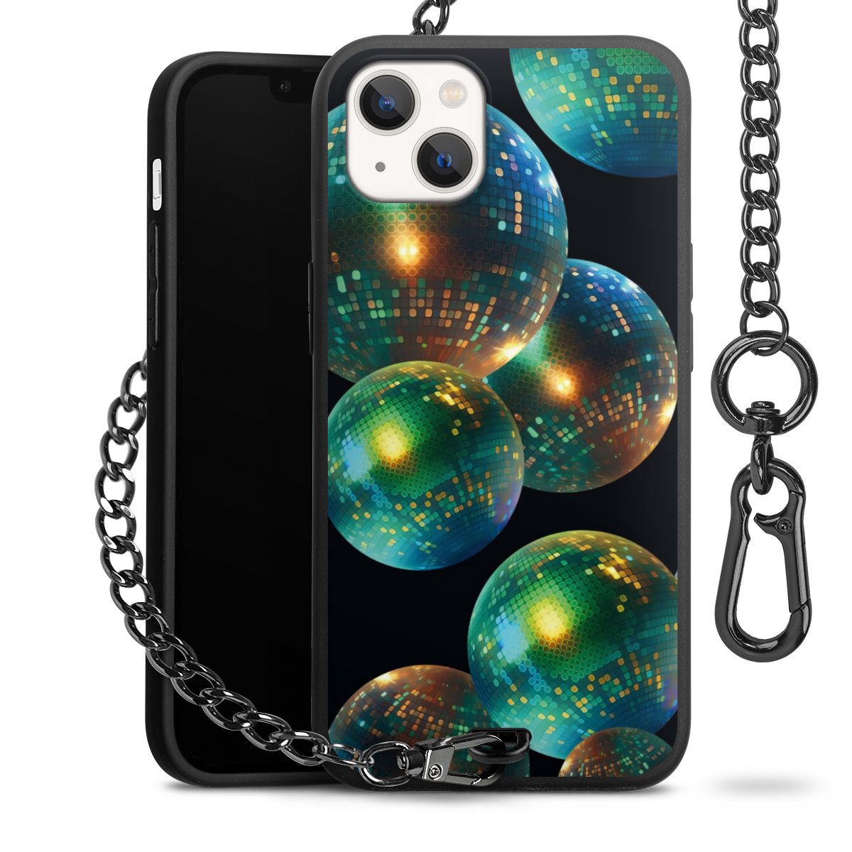 - Mattschwarze Handyhülle mit Metallkette