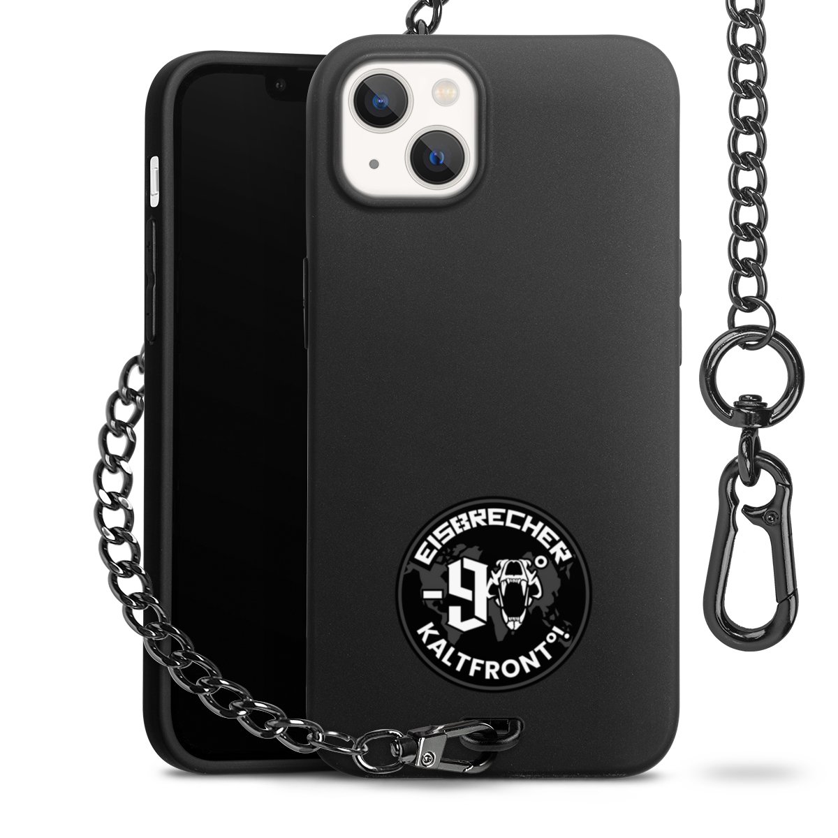 • Mattschwarze Handyhülle mit Metallkette