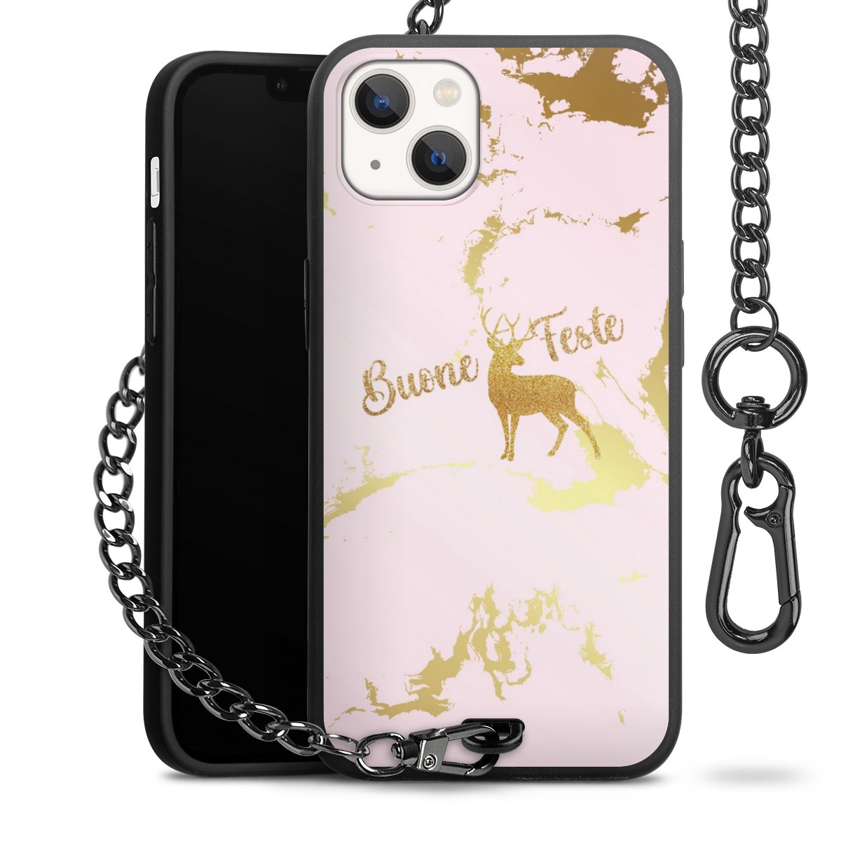 • Mattschwarze Handyhülle mit Metallkette