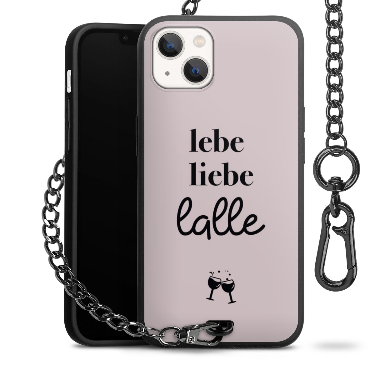 Die mattschwarze Silikon-Handyhülle besteht aus robustem TPU (thermoplastisches Polyurethan). Sie ist flexibel und schützt Dein Smartphone vor Stößen und Kratzern. Die Kette sowie der Karabinerhaken sind aus Metall in Gunmetal-Optik gefertigt. Für dieses Produkt kommen ausschließlich TÜV-geprüfte Materialien zum Einsatz.
