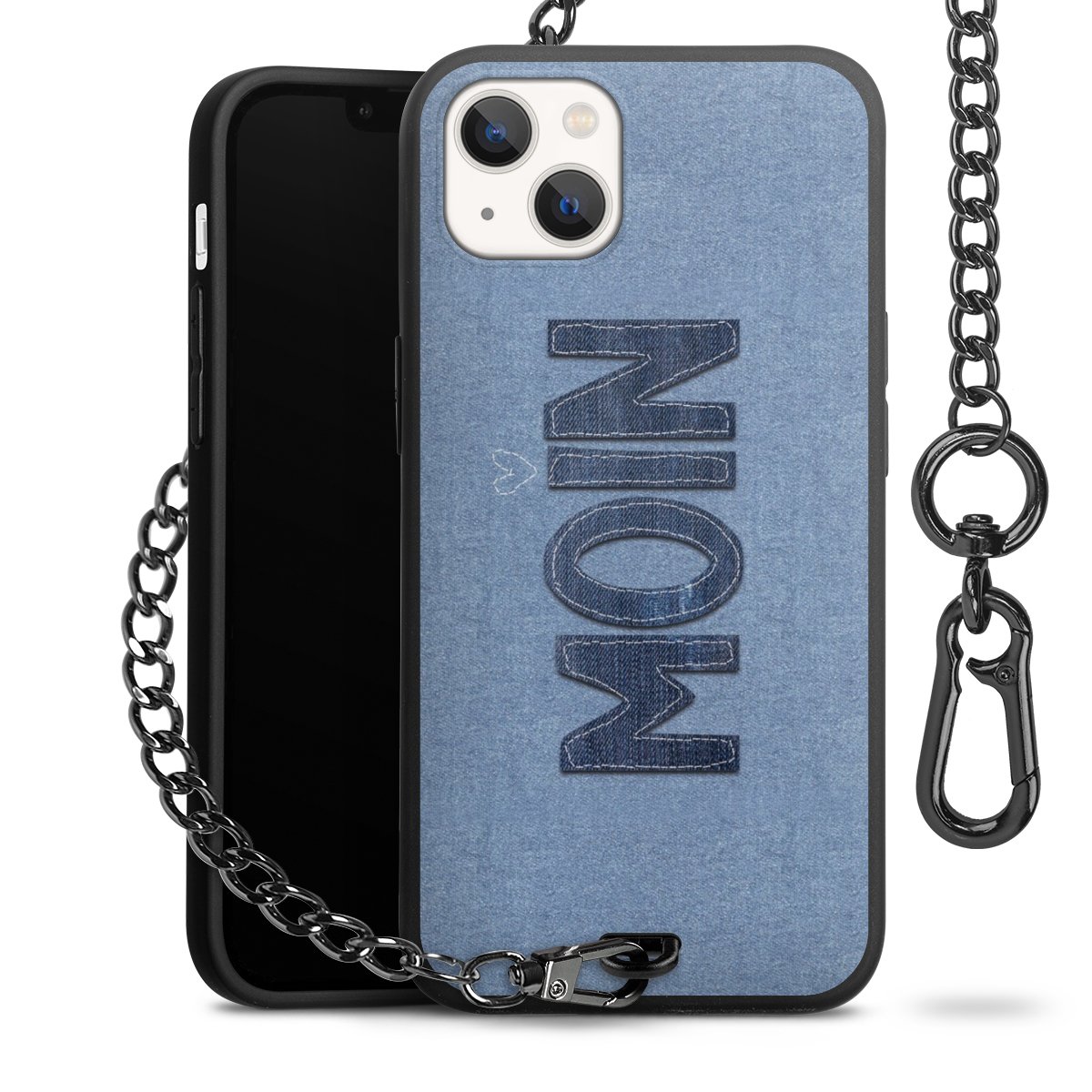 • Mattschwarze Handyhülle mit Metallkette