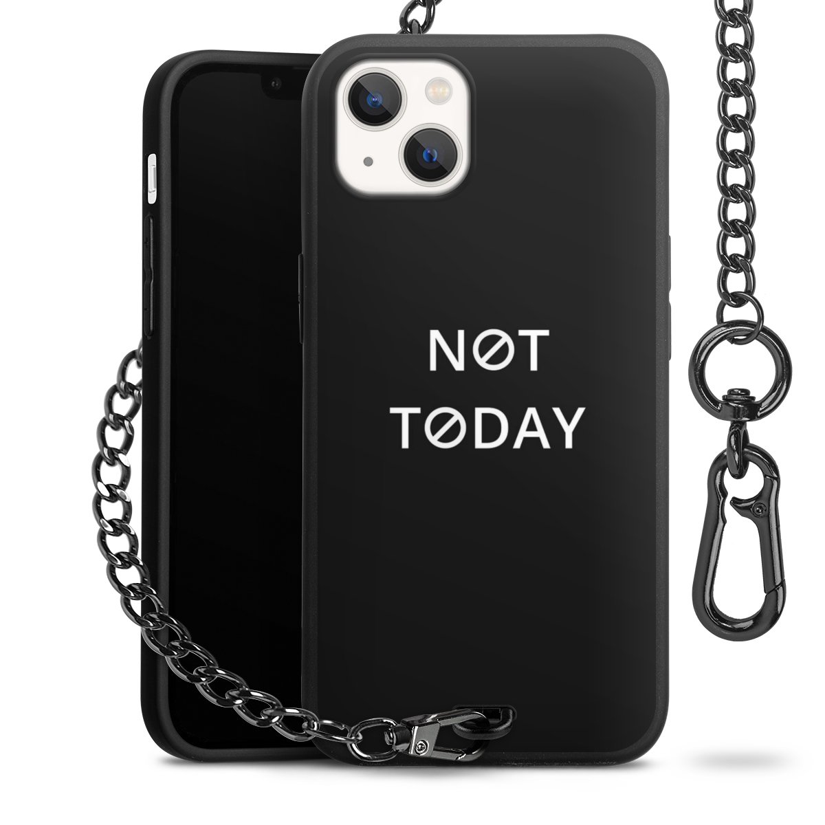 - Mattschwarze Handyhülle mit Metallkette