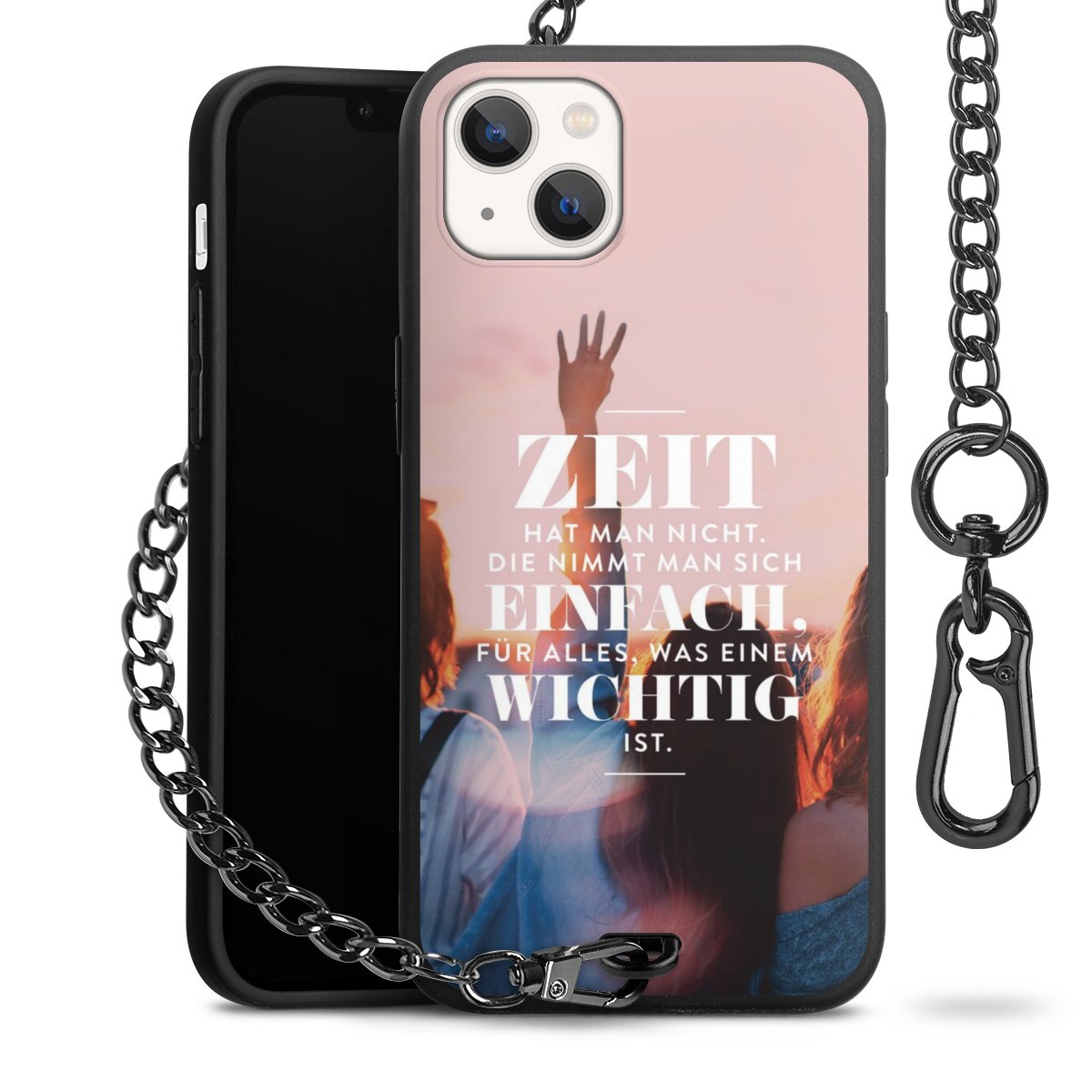 Die mattschwarze Silikon-Handyhülle besteht aus robustem TPU (thermoplastisches Polyurethan). Sie ist flexibel und schützt Dein Smartphone vor Stößen und Kratzern. Die Kette sowie der Karabinerhaken sind aus Metall in Gunmetal-Optik gefertigt. Für dieses Produkt kommen ausschließlich TÜV-geprüfte Materialien zum Einsatz.