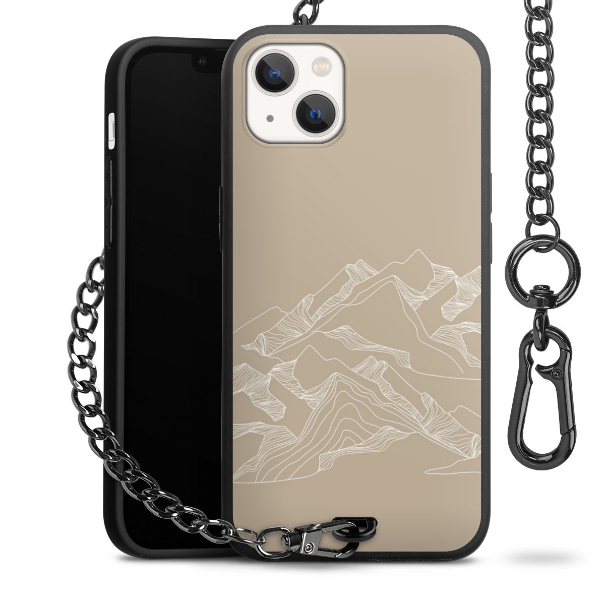 - Mattschwarze Handyhülle mit Metallkette