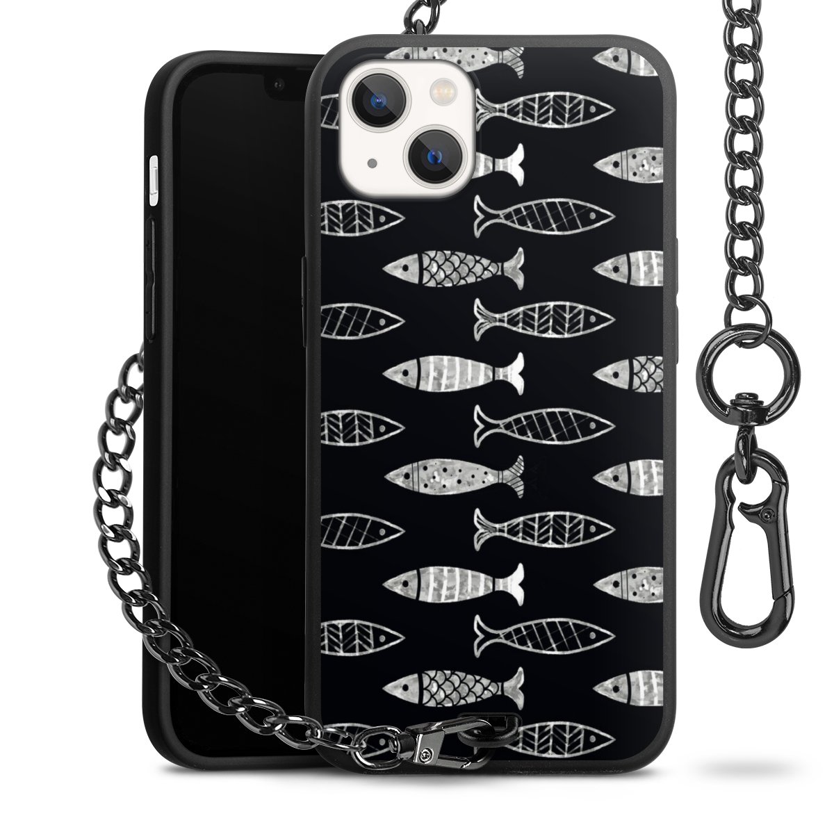 • Mattschwarze Handyhülle mit Metallkette