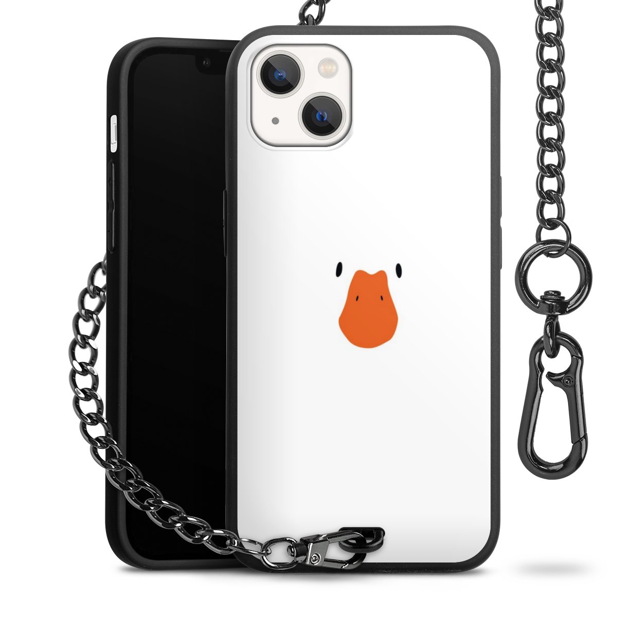 - Mattschwarze Handyhülle mit Metallkette