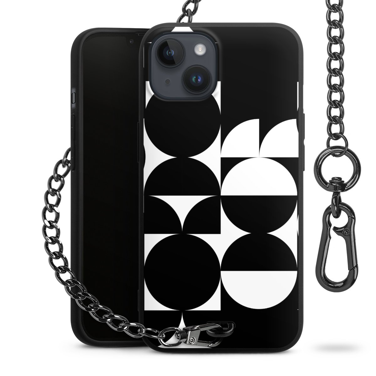 - Mattschwarze Handyhülle mit Metallkette