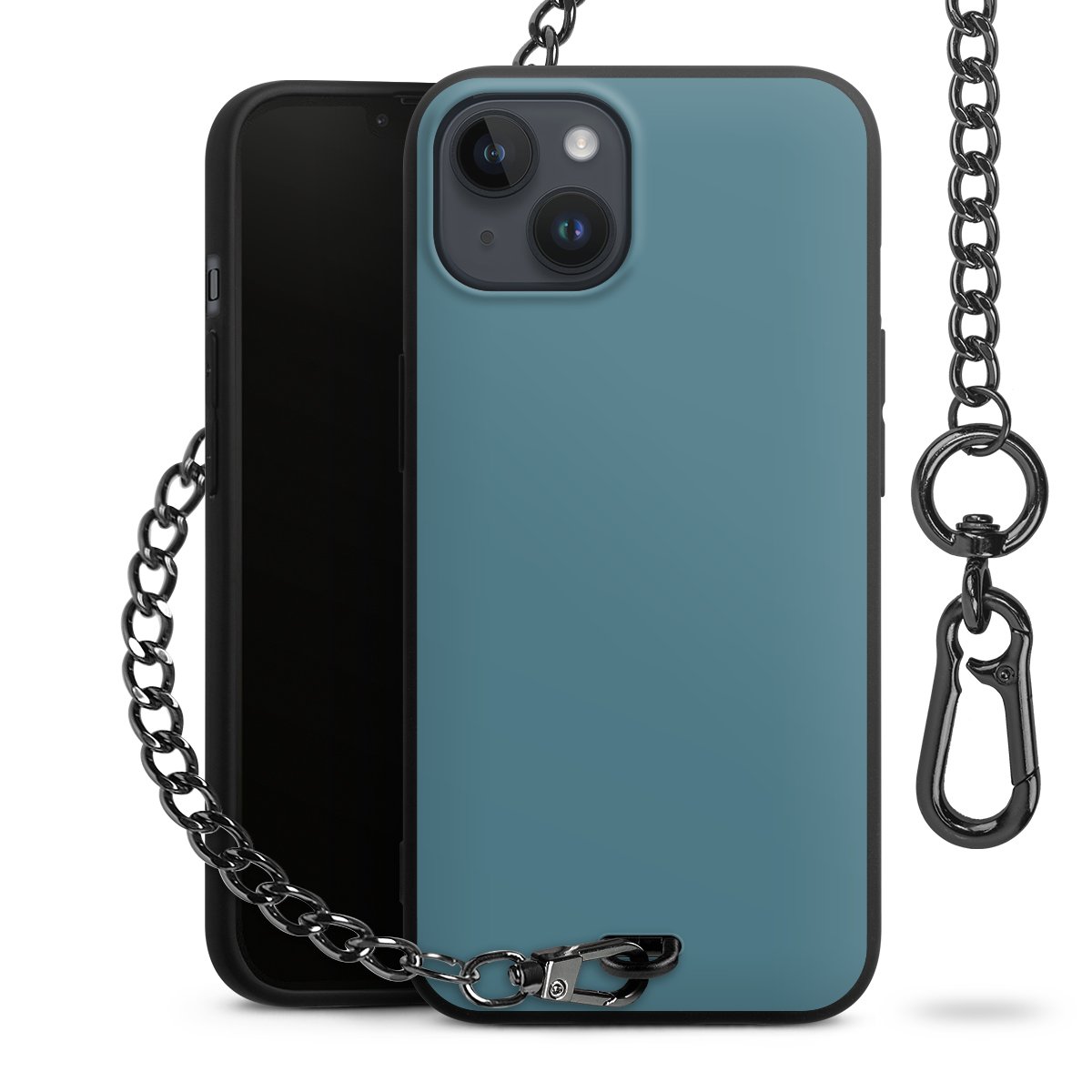 - Mattschwarze Handyhülle mit Metallkette