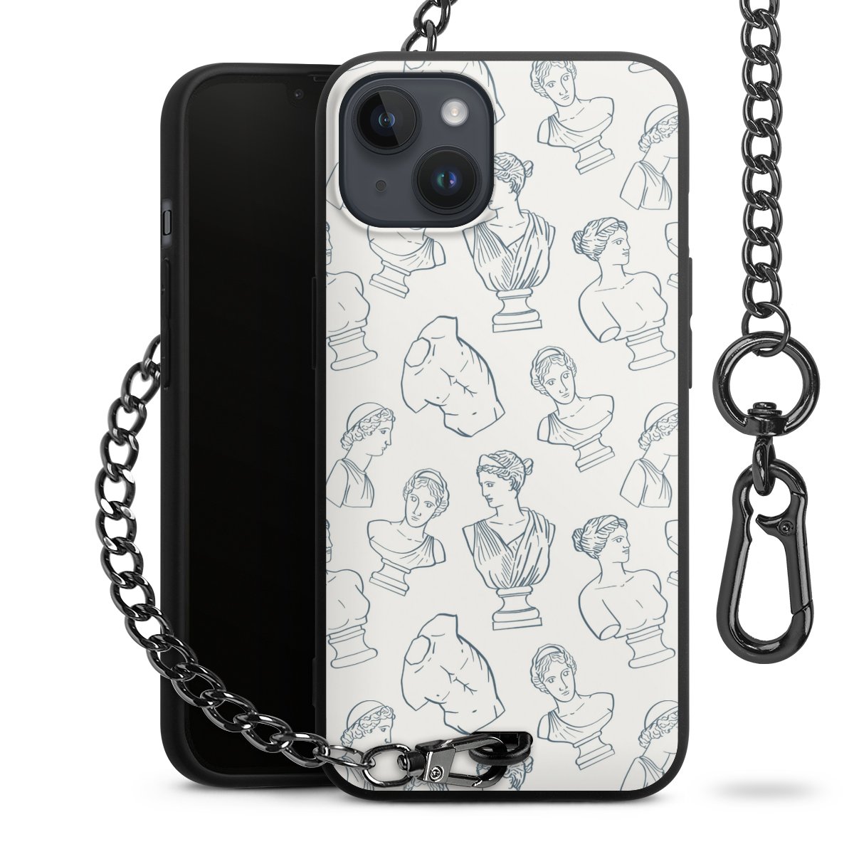 Die mattschwarze Silikon-Handyhülle besteht aus robustem TPU (thermoplastisches Polyurethan). Sie ist flexibel und schützt Dein Smartphone vor Stößen und Kratzern. Die Kette sowie der Karabinerhaken sind aus Metall in Gunmetal-Optik gefertigt. Für dieses Produkt kommen ausschließlich TÜV-geprüfte Materialien zum Einsatz.