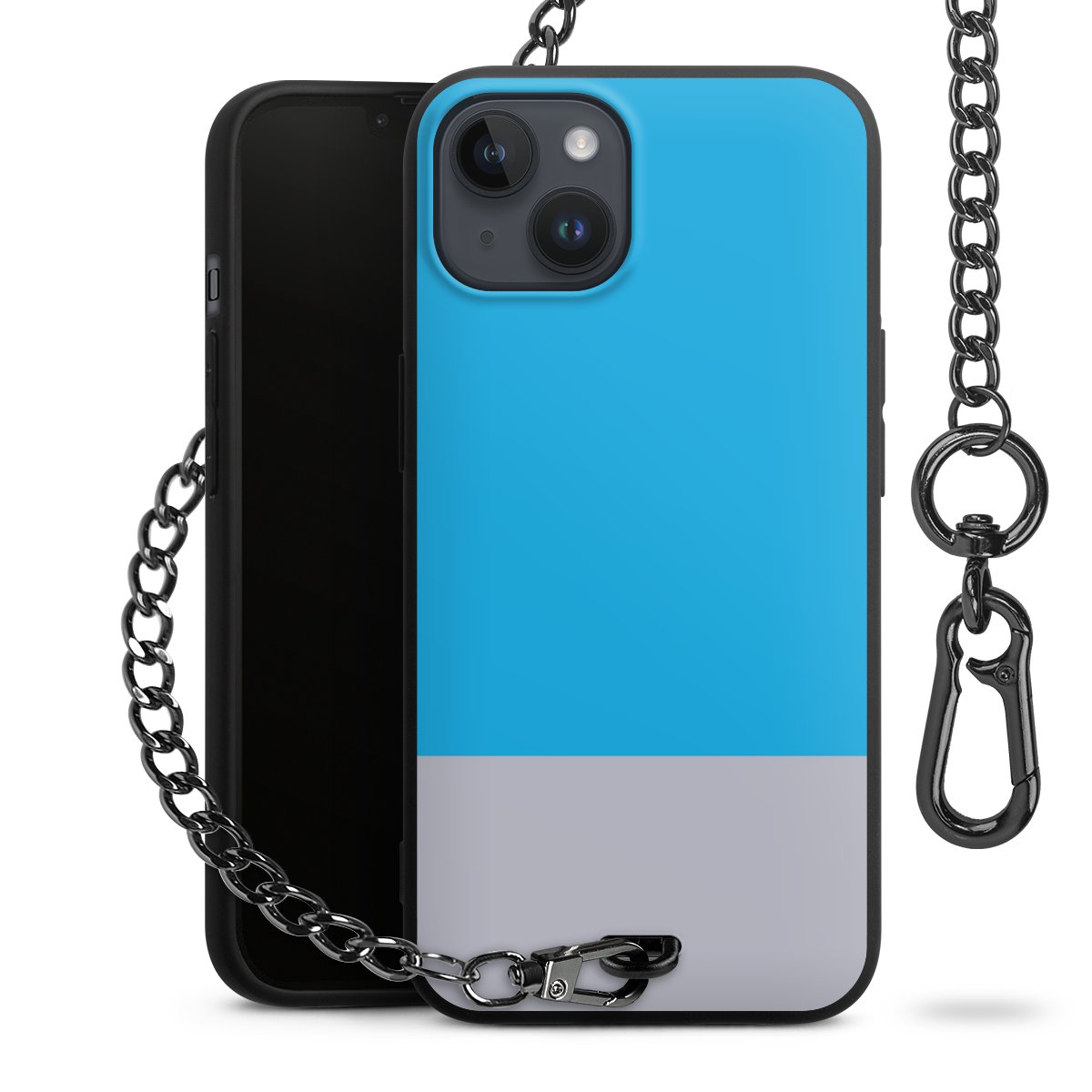- Mattschwarze Handyhülle mit Metallkette