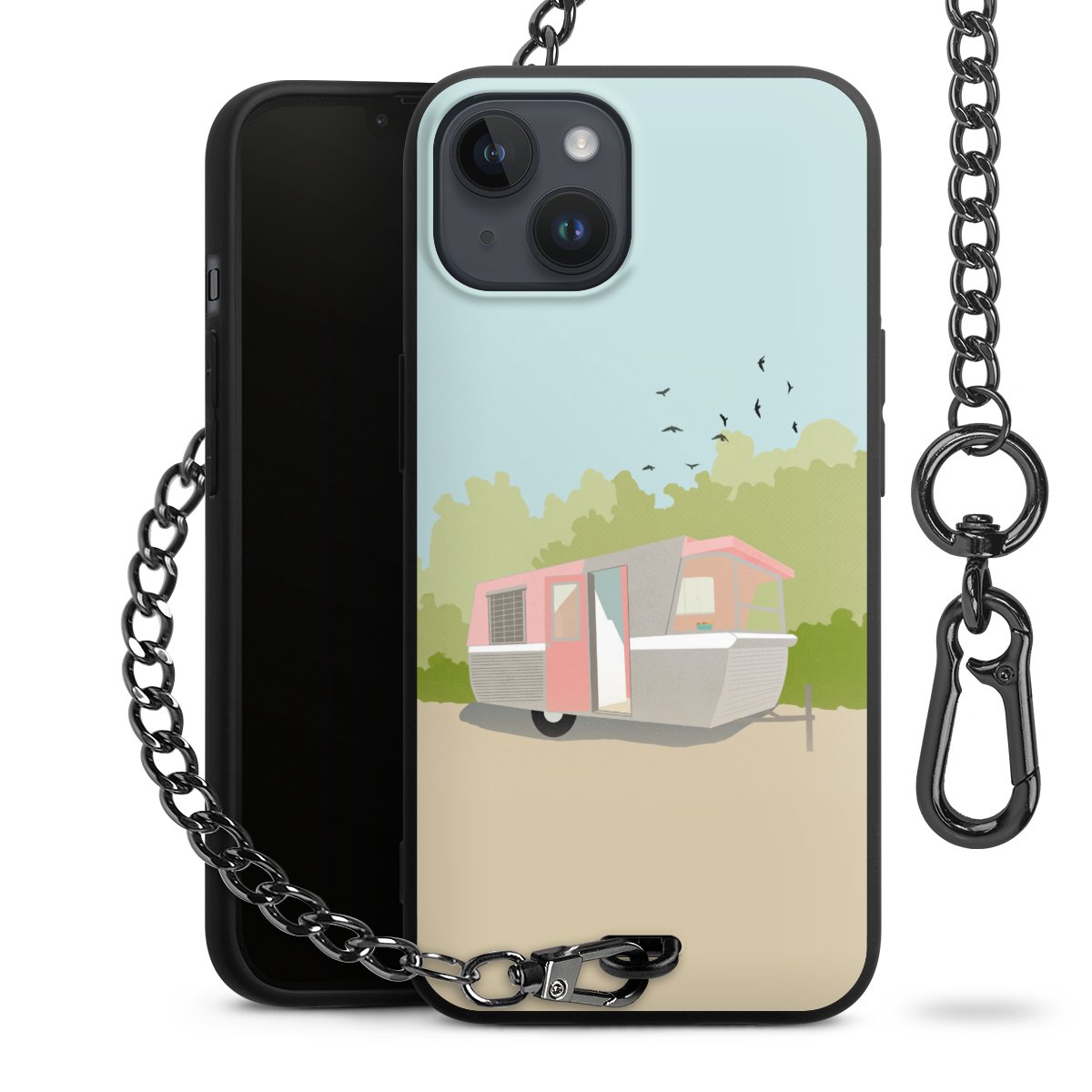 Die mattschwarze Silikon-Handyhülle besteht aus robustem TPU (thermoplastisches Polyurethan). Sie ist flexibel und schützt Dein Smartphone vor Stößen und Kratzern. Die Kette sowie der Karabinerhaken sind aus Metall in Gunmetal-Optik gefertigt. Für dieses Produkt kommen ausschließlich TÜV-geprüfte Materialien zum Einsatz.