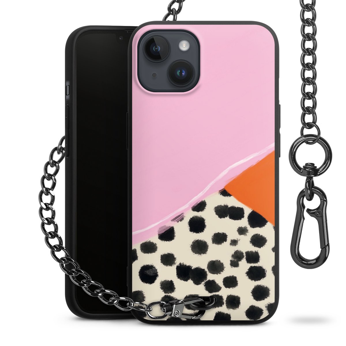 • Mattschwarze Handyhülle mit Metallkette