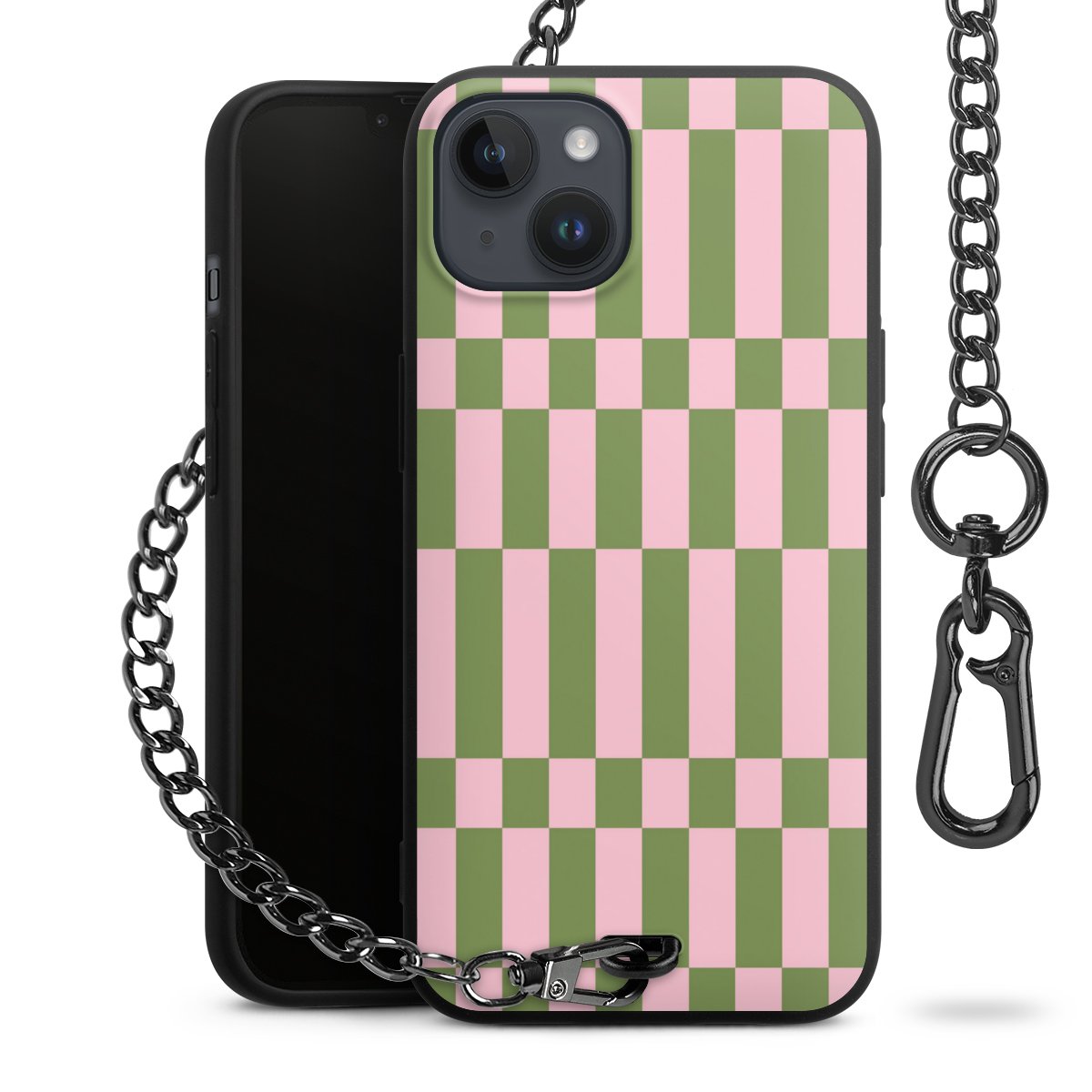 • Mattschwarze Handyhülle mit Metallkette