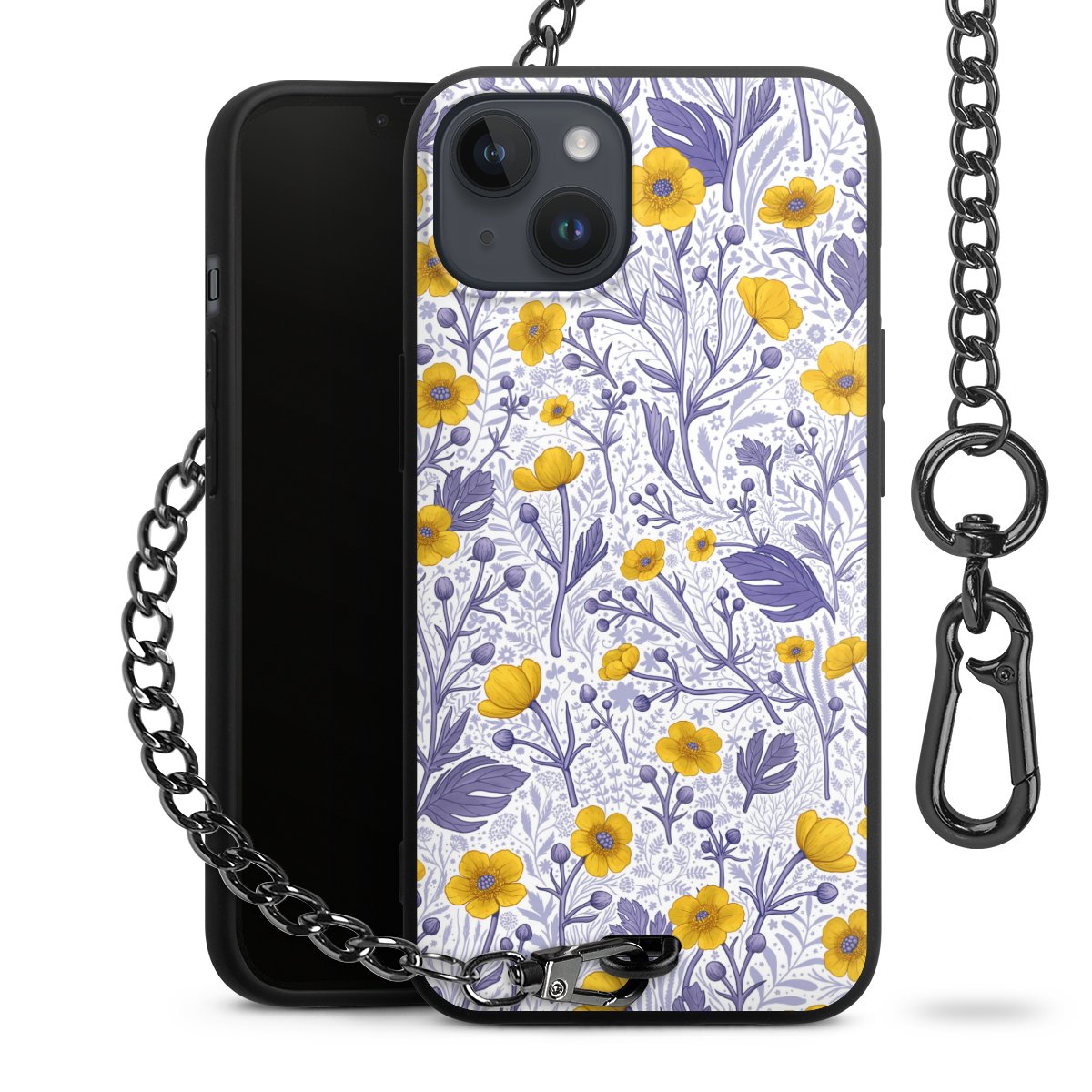 • Mattschwarze Handyhülle mit Metallkette