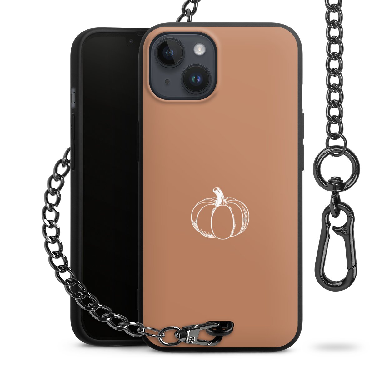 - Mattschwarze Handyhülle mit Metallkette