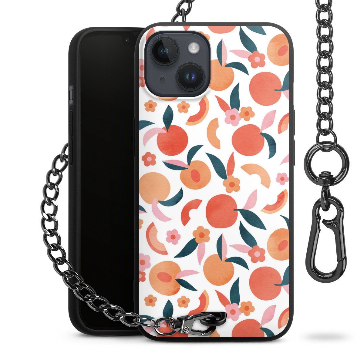 • Mattschwarze Handyhülle mit Metallkette