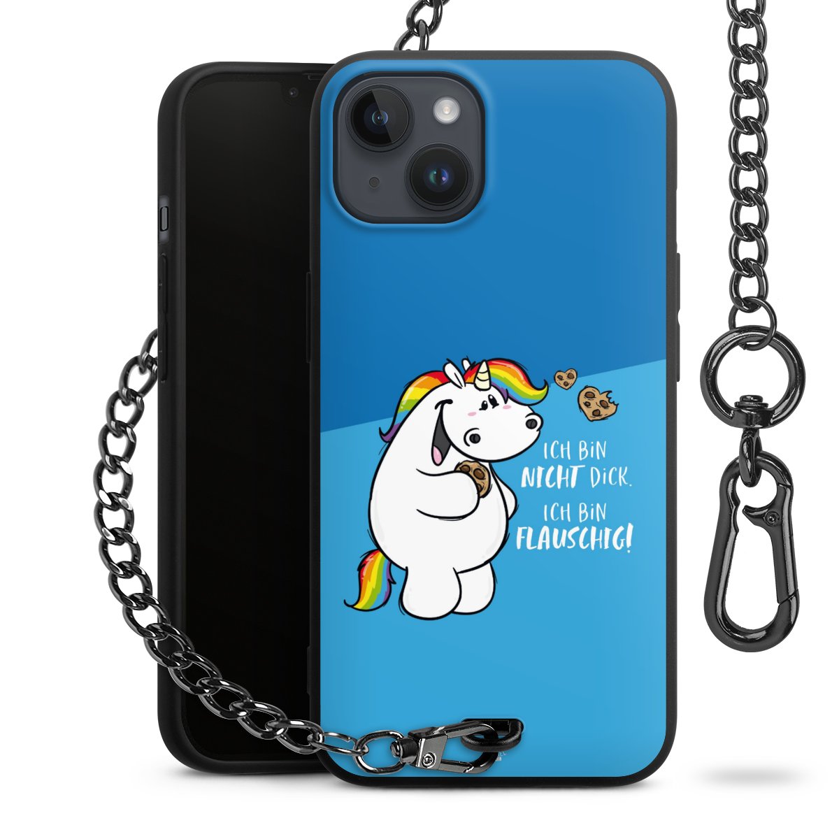 Die mattschwarze Silikon-Handyhülle besteht aus robustem TPU (thermoplastisches Polyurethan). Sie ist flexibel und schützt Dein Smartphone vor Stößen und Kratzern. Die Kette sowie der Karabinerhaken sind aus Metall in Gunmetal-Optik gefertigt. Für dieses Produkt kommen ausschließlich TÜV-geprüfte Materialien zum Einsatz.