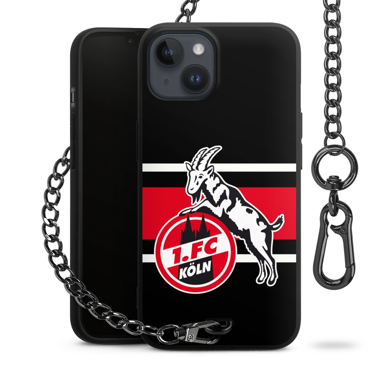 Die Handyhülle verfügt über eine mittig am unteren Rand platzierte Öse, an der die Metallkette stabil befestigt ist. Bestelle die Hülle einfach für Dein Smartphone-Modell, dann passt sie wie angegossen und Du brauchst sie bloß einmal anzudrücken. Handy in die Tasche, Karabiner an den Hosenbund – schon kann die Party starten.