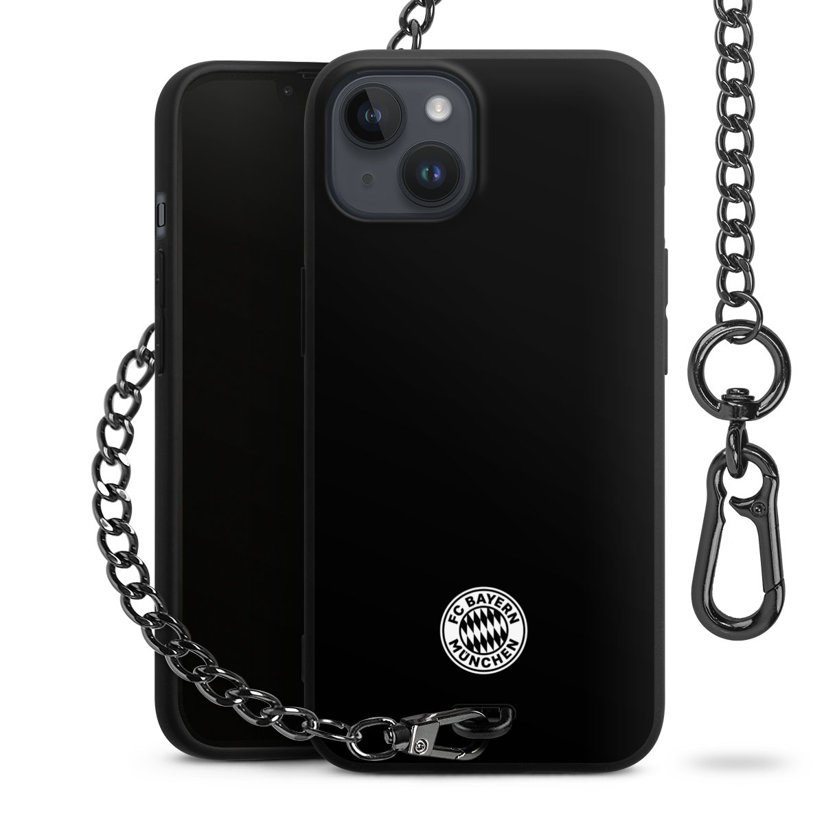 • Mattschwarze Handyhülle mit Metallkette