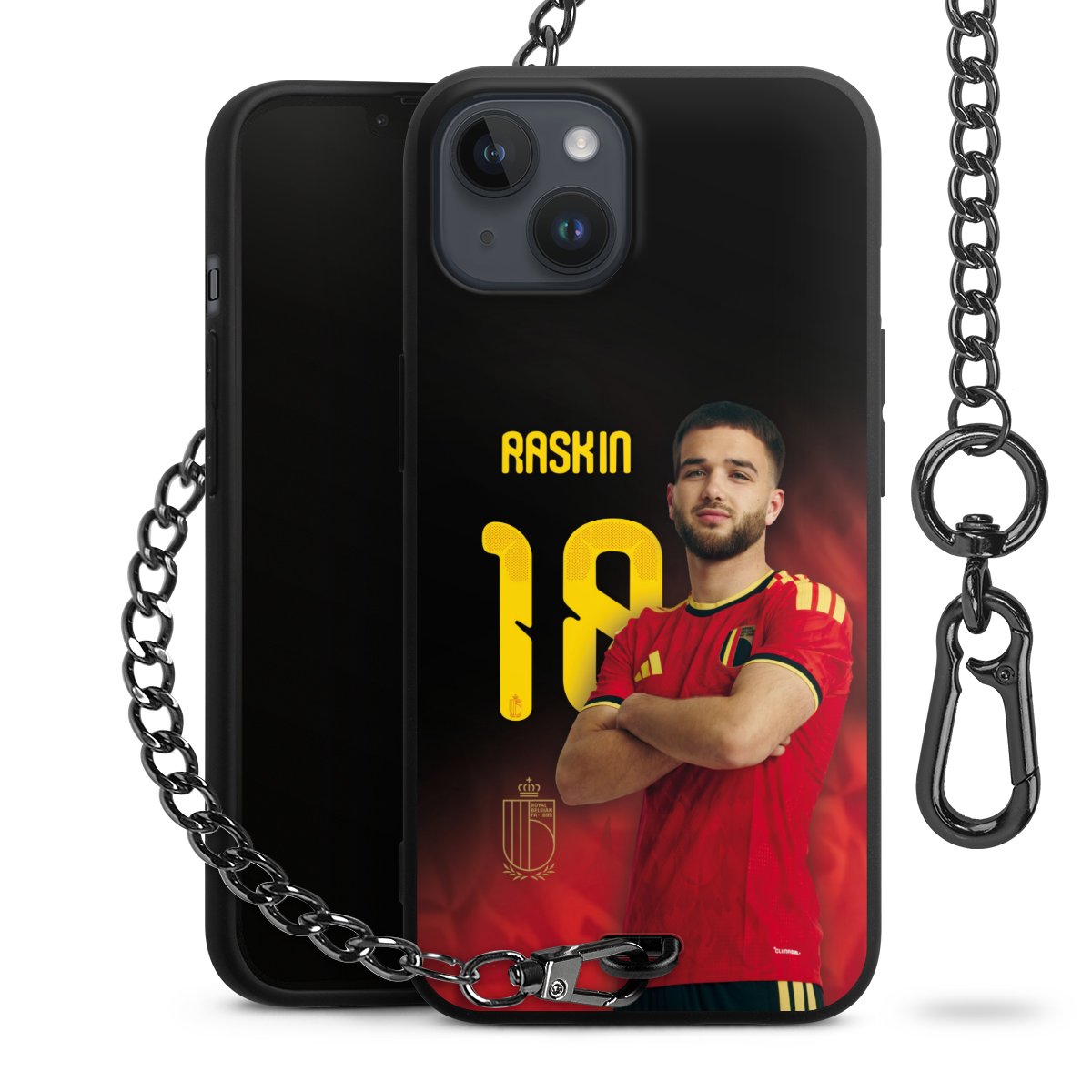 Die mattschwarze Silikon-Handyhülle besteht aus robustem TPU (thermoplastisches Polyurethan). Sie ist flexibel und schützt Dein Smartphone vor Stößen und Kratzern. Die Kette sowie der Karabinerhaken sind aus Metall in Gunmetal-Optik gefertigt. Für dieses Produkt kommen ausschließlich TÜV-geprüfte Materialien zum Einsatz.