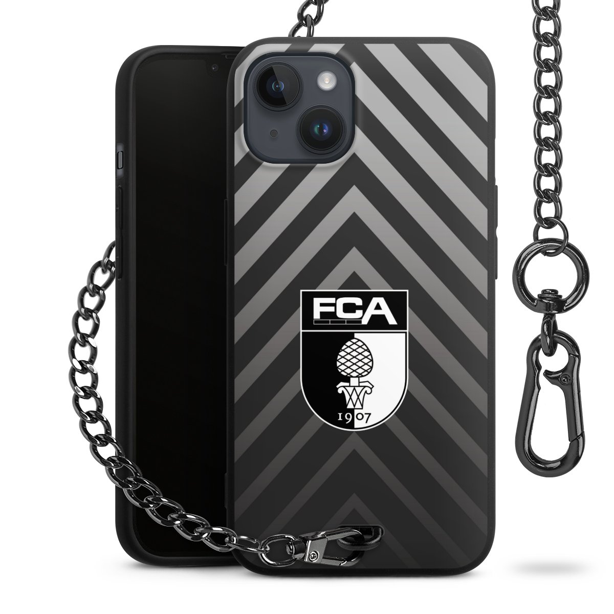 Die mattschwarze Silikon-Handyhülle besteht aus robustem TPU (thermoplastisches Polyurethan). Sie ist flexibel und schützt Dein Smartphone vor Stößen und Kratzern. Die Kette sowie der Karabinerhaken sind aus Metall in Gunmetal-Optik gefertigt. Für dieses Produkt kommen ausschließlich TÜV-geprüfte Materialien zum Einsatz.