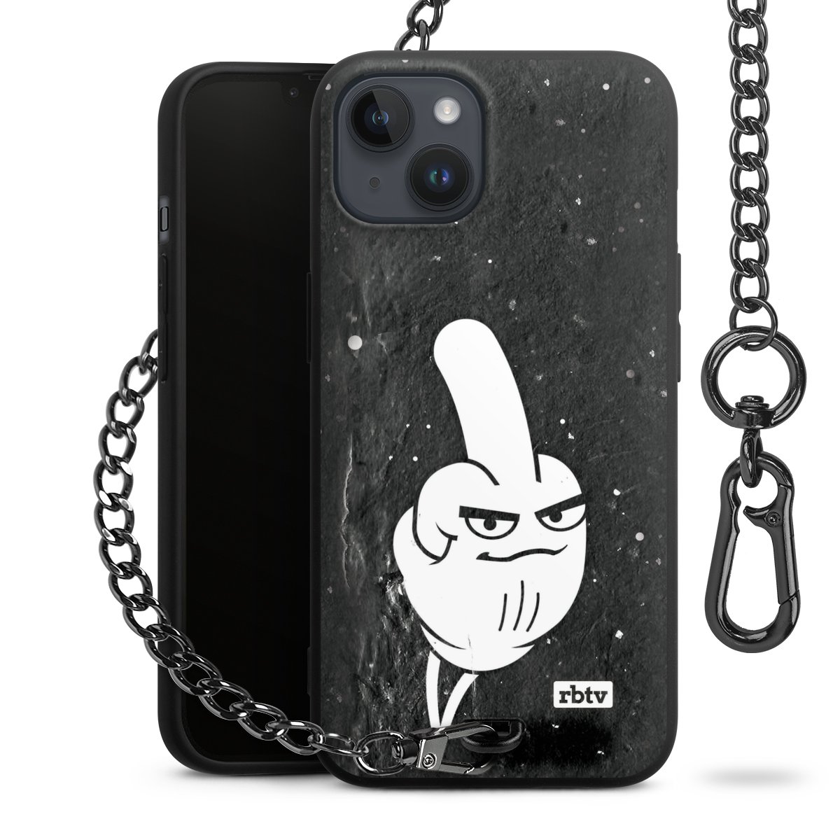 Die mattschwarze Silikon-Handyhülle besteht aus robustem TPU (thermoplastisches Polyurethan). Sie ist flexibel und schützt Dein Smartphone vor Stößen und Kratzern. Die Kette sowie der Karabinerhaken sind aus Metall in Gunmetal-Optik gefertigt. Für dieses Produkt kommen ausschließlich TÜV-geprüfte Materialien zum Einsatz.