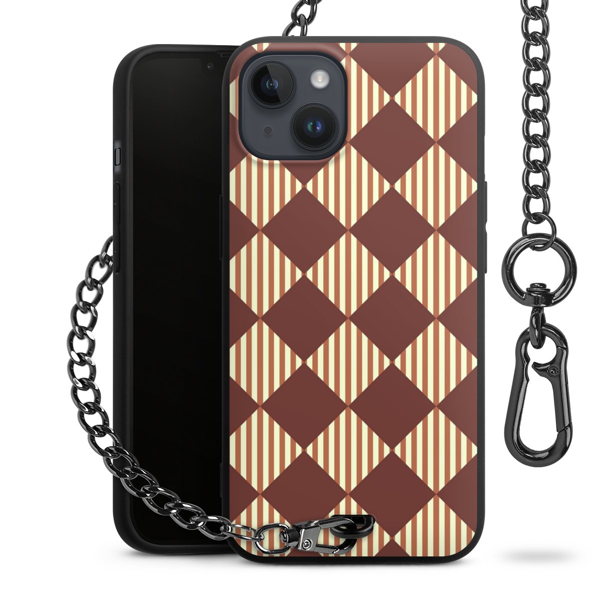 - Mattschwarze Handyhülle mit Metallkette