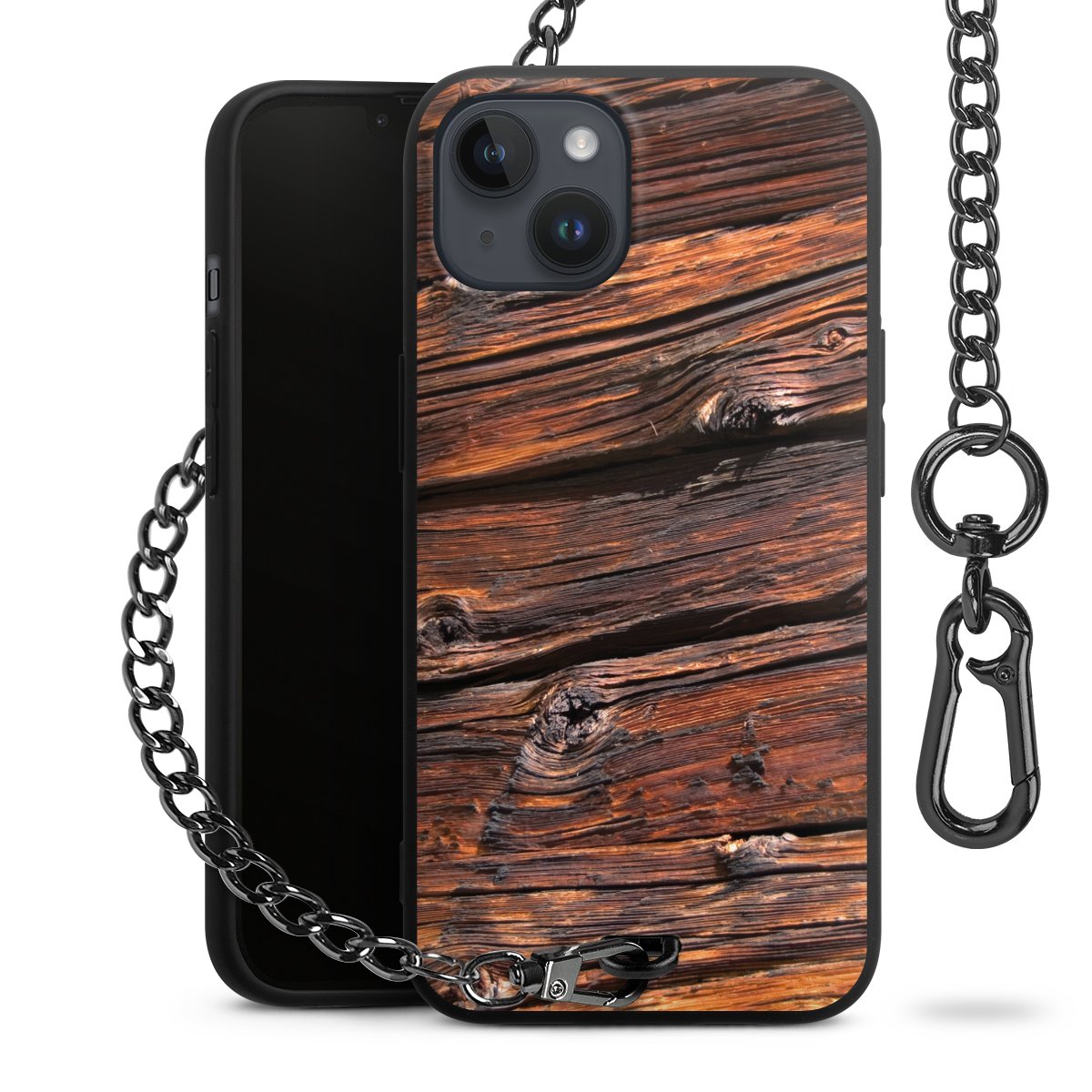 - Mattschwarze Handyhülle mit Metallkette