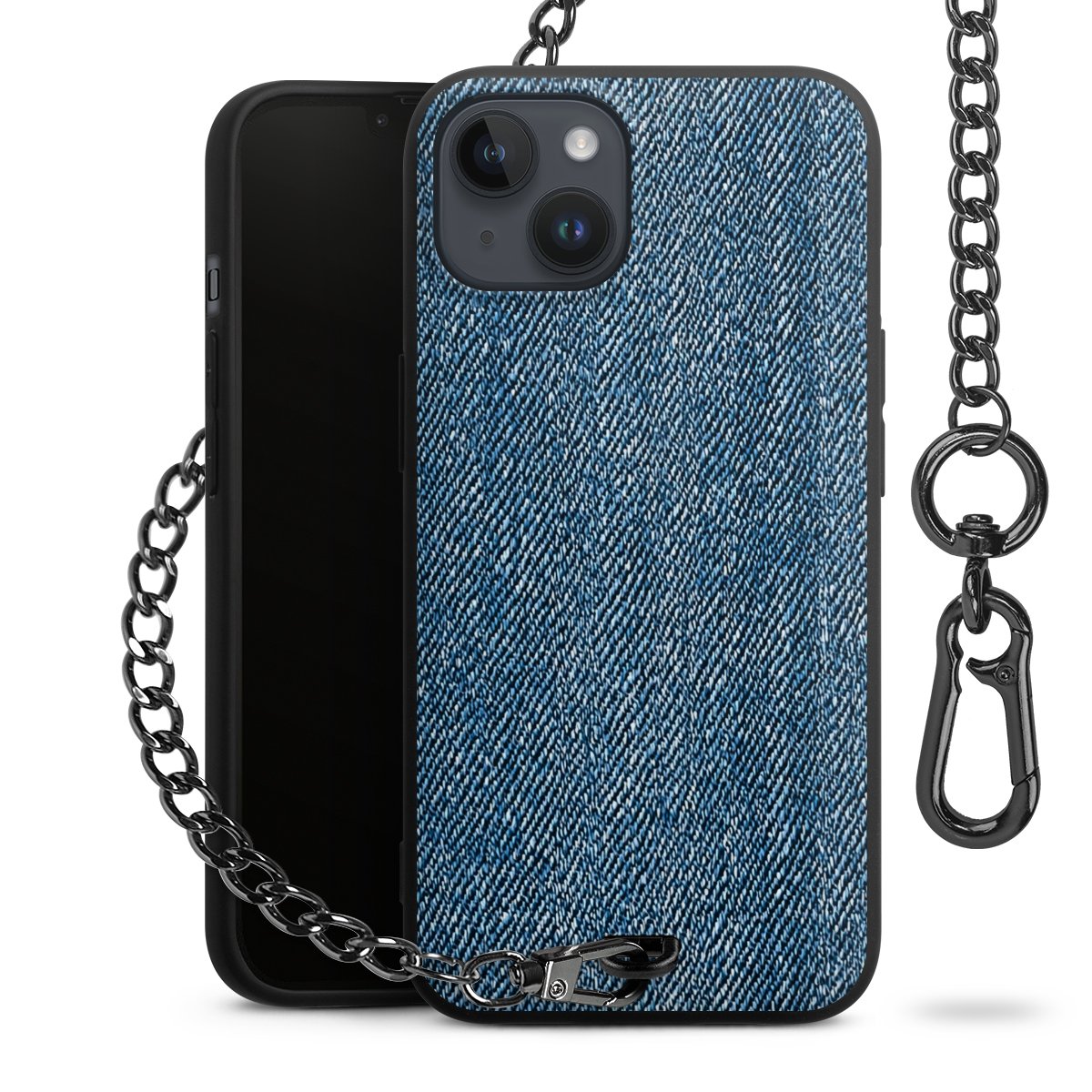 • Mattschwarze Handyhülle mit Metallkette