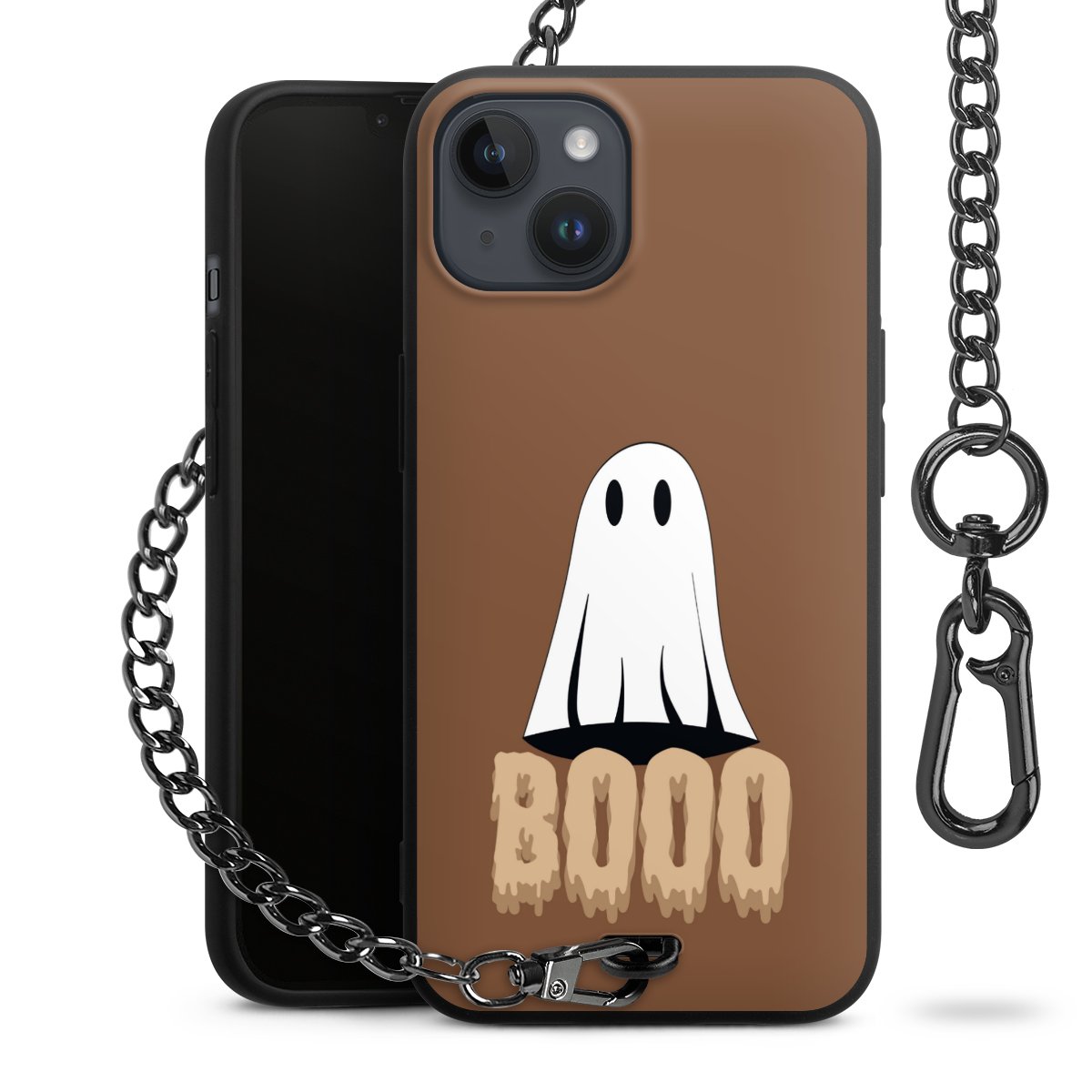 - Mattschwarze Handyhülle mit Metallkette