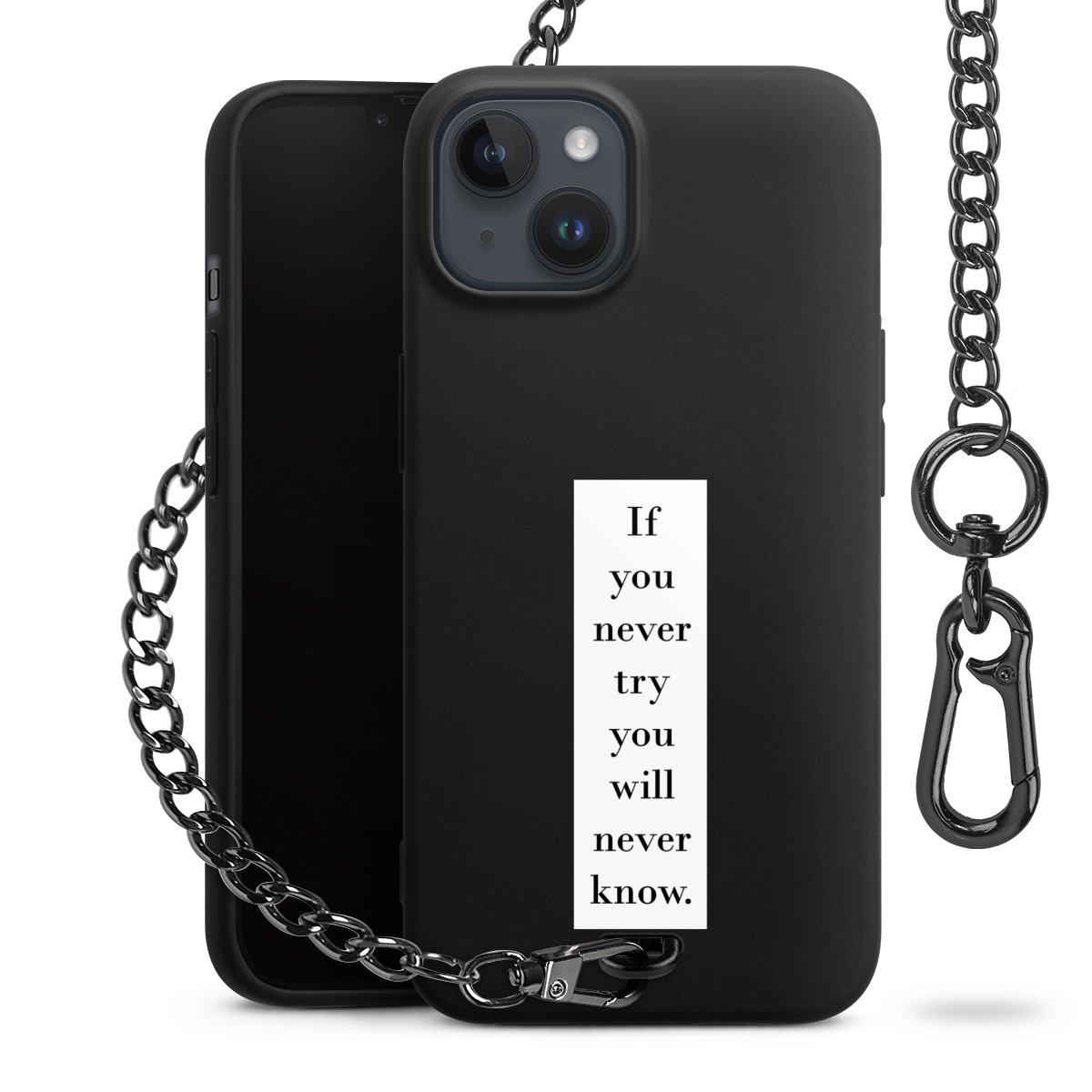 - Mattschwarze Handyhülle mit Metallkette