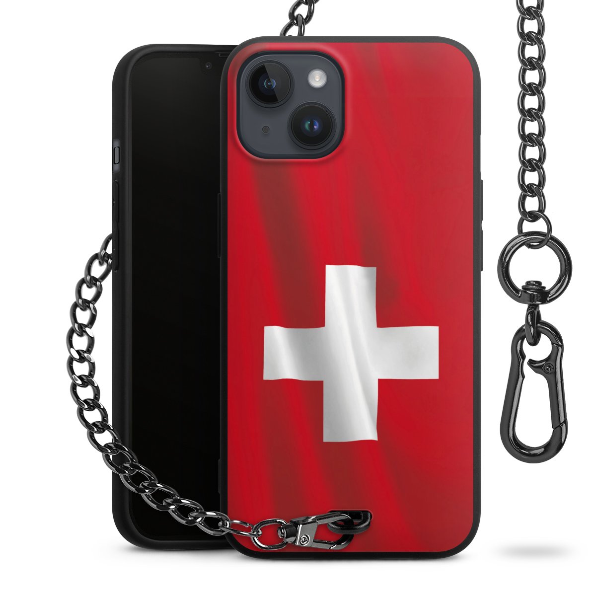Die mattschwarze Silikon-Handyhülle besteht aus robustem TPU (thermoplastisches Polyurethan). Sie ist flexibel und schützt Dein Smartphone vor Stößen und Kratzern. Die Kette sowie der Karabinerhaken sind aus Metall in Gunmetal-Optik gefertigt. Für dieses Produkt kommen ausschließlich TÜV-geprüfte Materialien zum Einsatz.