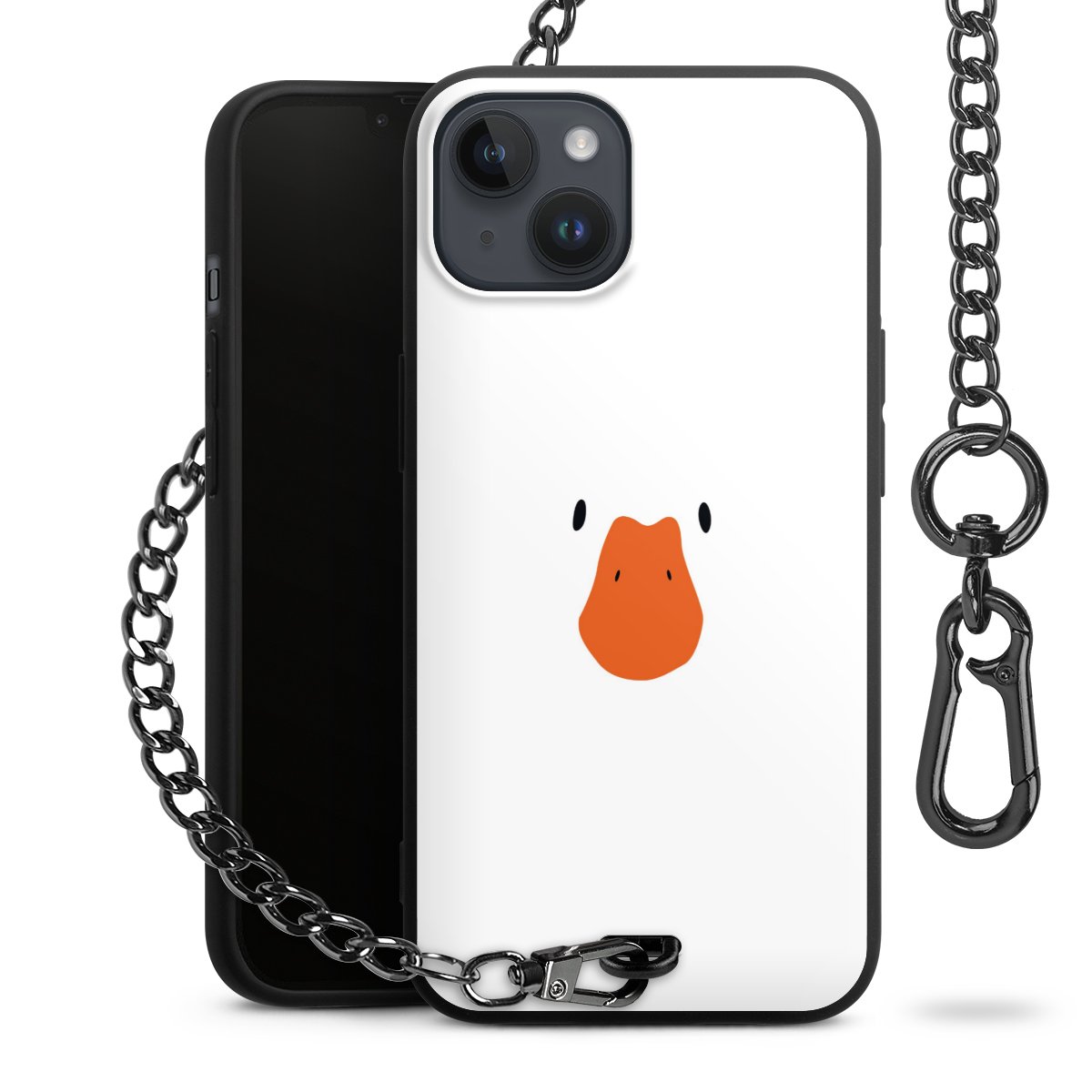 - Mattschwarze Handyhülle mit Metallkette