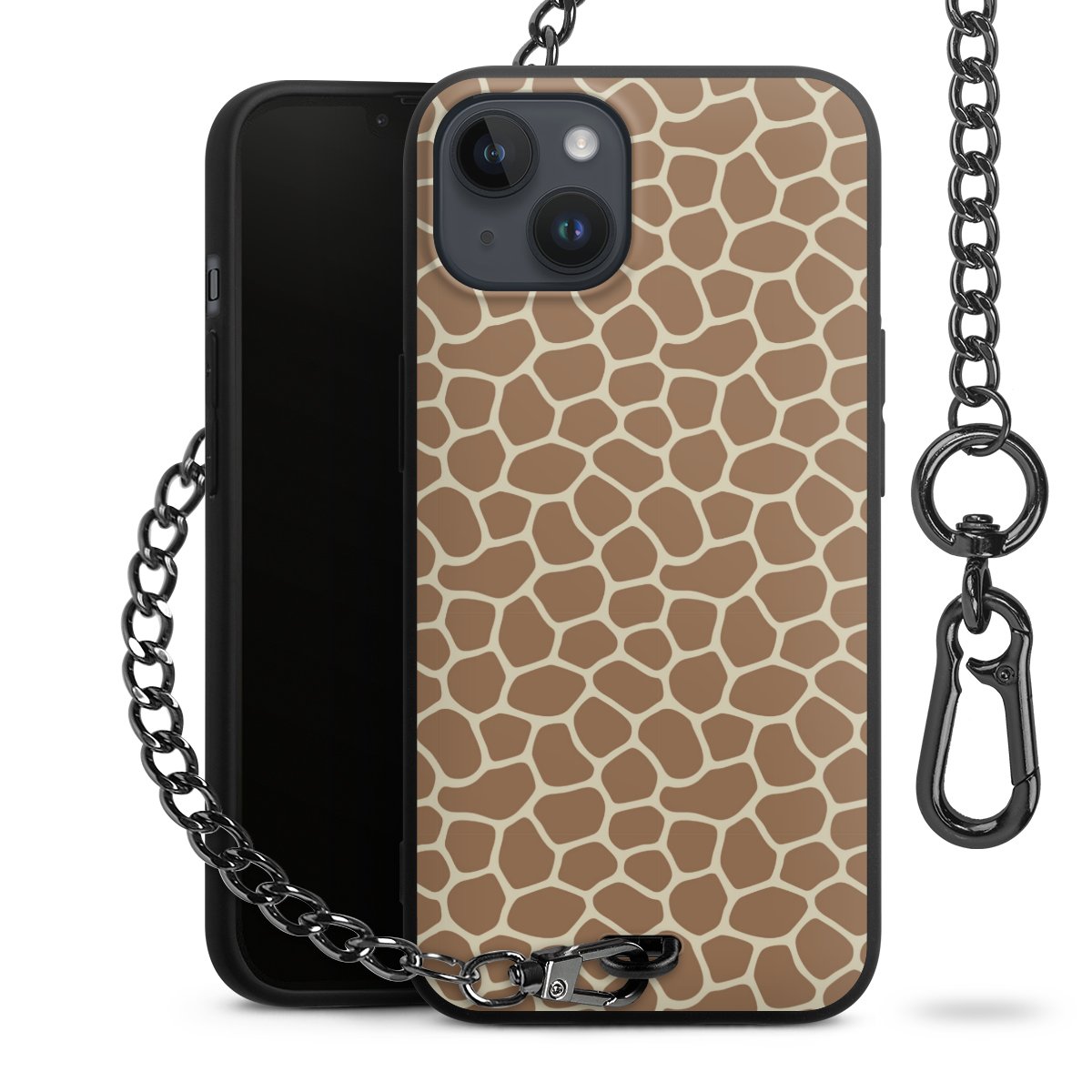 - Mattschwarze Handyhülle mit Metallkette