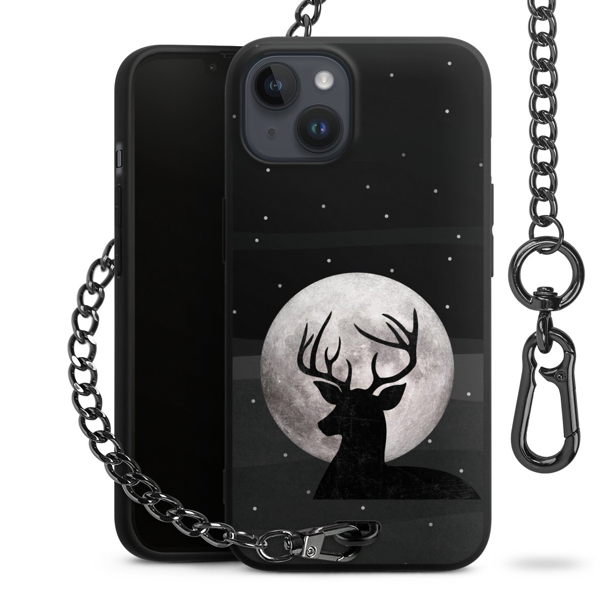 • Mattschwarze Handyhülle mit Metallkette