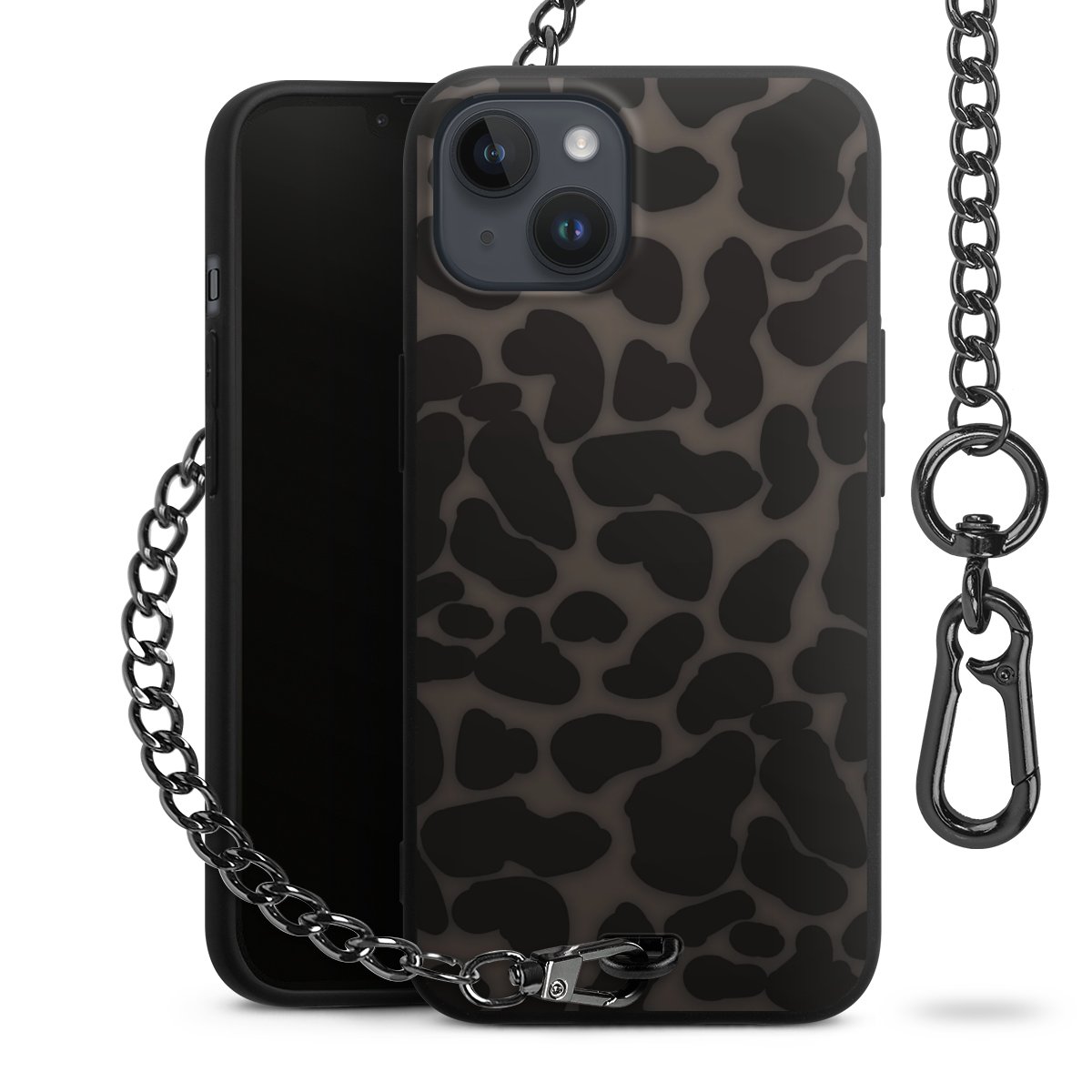 • Mattschwarze Handyhülle mit Metallkette
