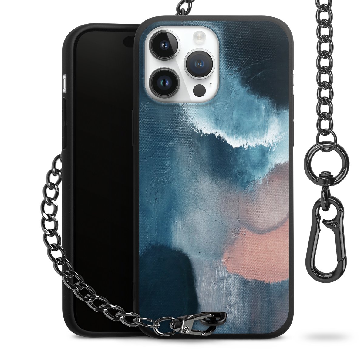 • Mattschwarze Handyhülle mit Metallkette