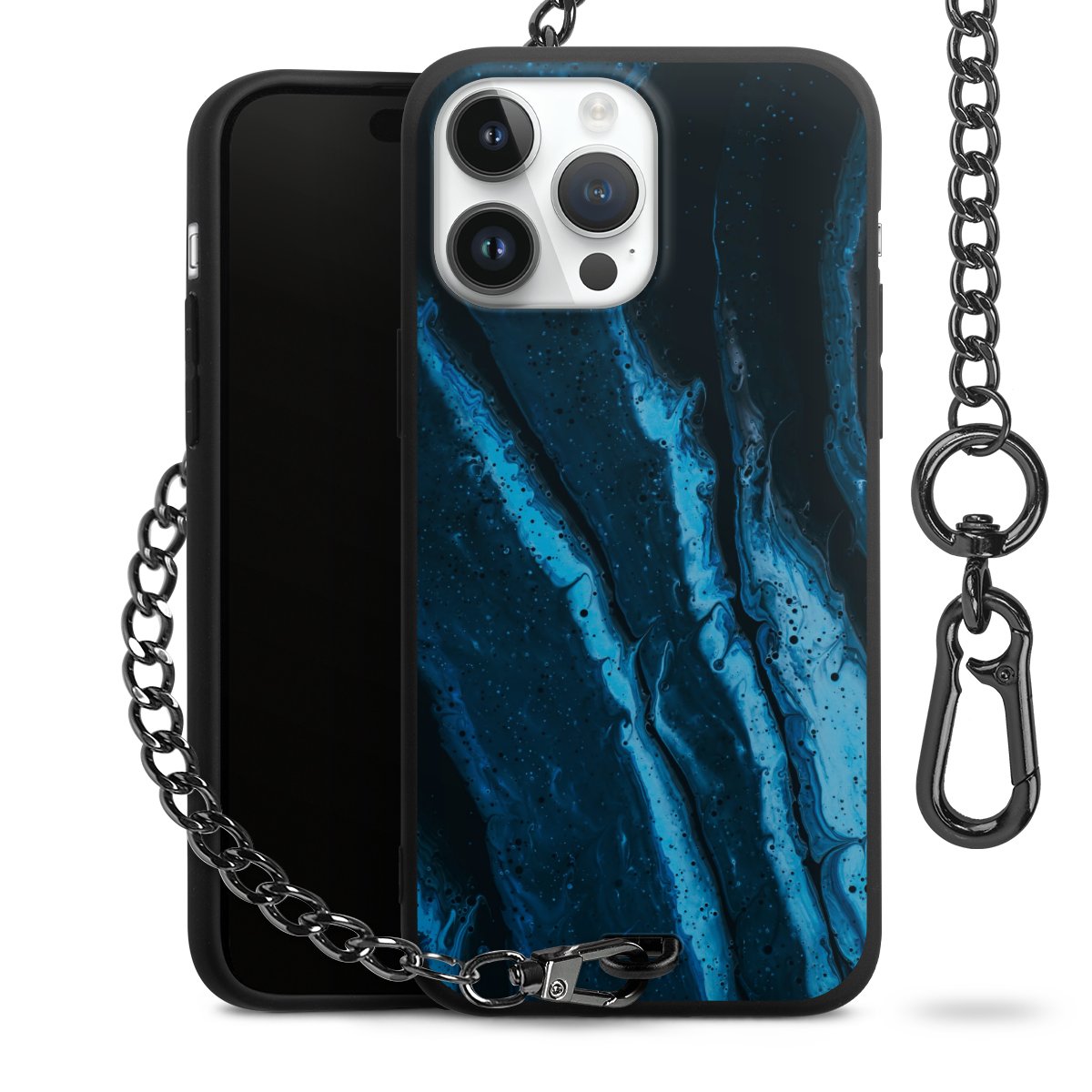 - Mattschwarze Handyhülle mit Metallkette