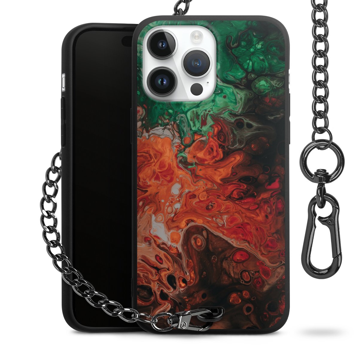 - Mattschwarze Handyhülle mit Metallkette