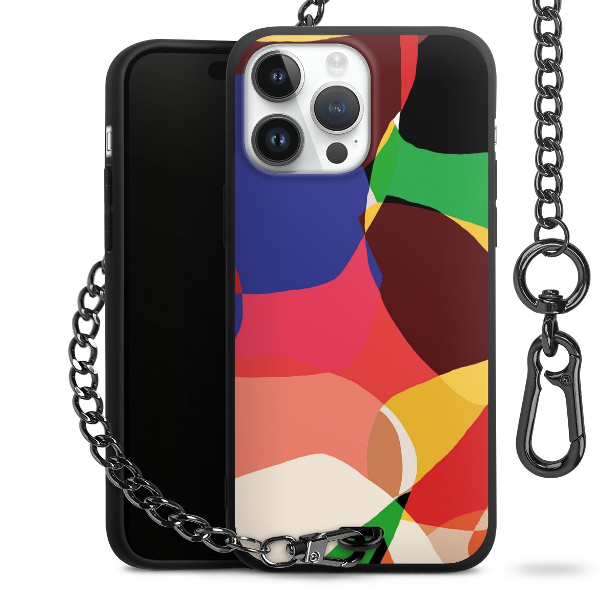 • Mattschwarze Handyhülle mit Metallkette