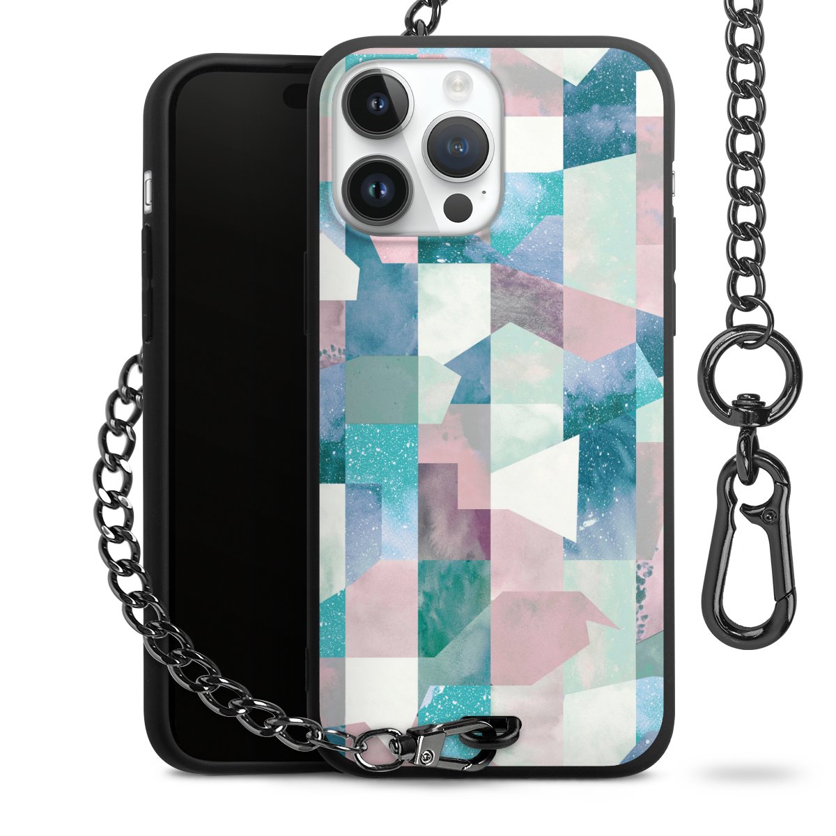 • Mattschwarze Handyhülle mit Metallkette