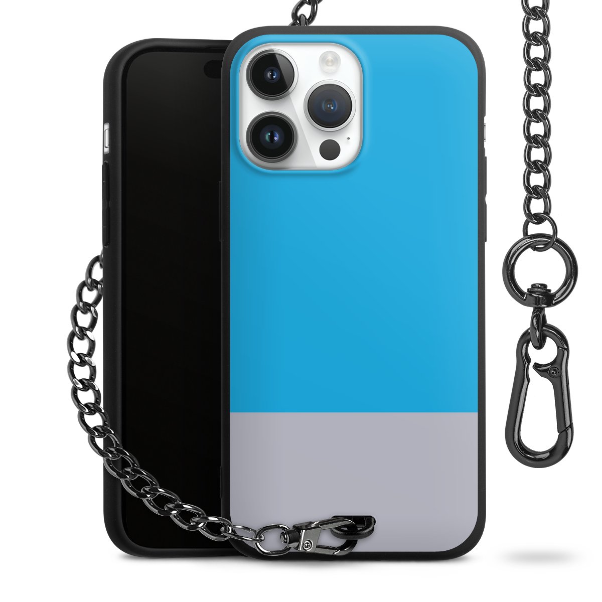 - Mattschwarze Handyhülle mit Metallkette