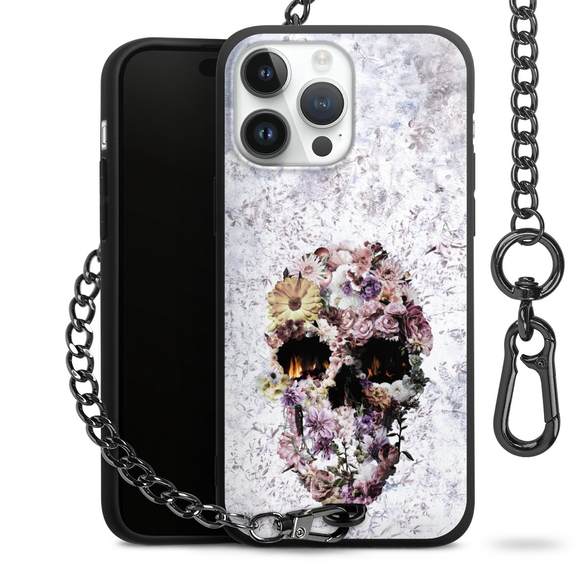 Die mattschwarze Silikon-Handyhülle besteht aus robustem TPU (thermoplastisches Polyurethan). Sie ist flexibel und schützt Dein Smartphone vor Stößen und Kratzern. Die Kette sowie der Karabinerhaken sind aus Metall in Gunmetal-Optik gefertigt. Für dieses Produkt kommen ausschließlich TÜV-geprüfte Materialien zum Einsatz.