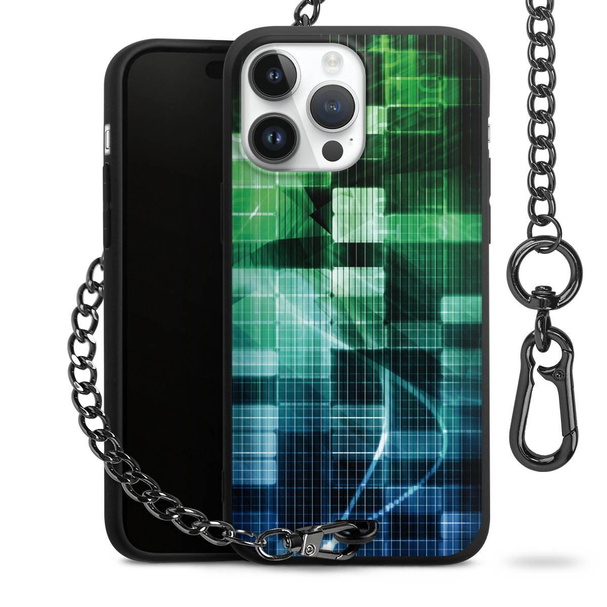 - Mattschwarze Handyhülle mit Metallkette