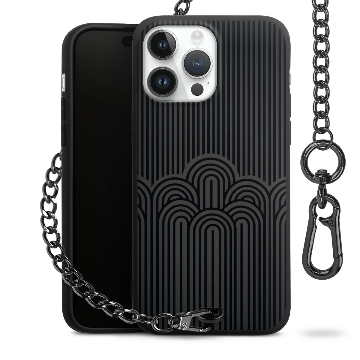 • Mattschwarze Handyhülle mit Metallkette
