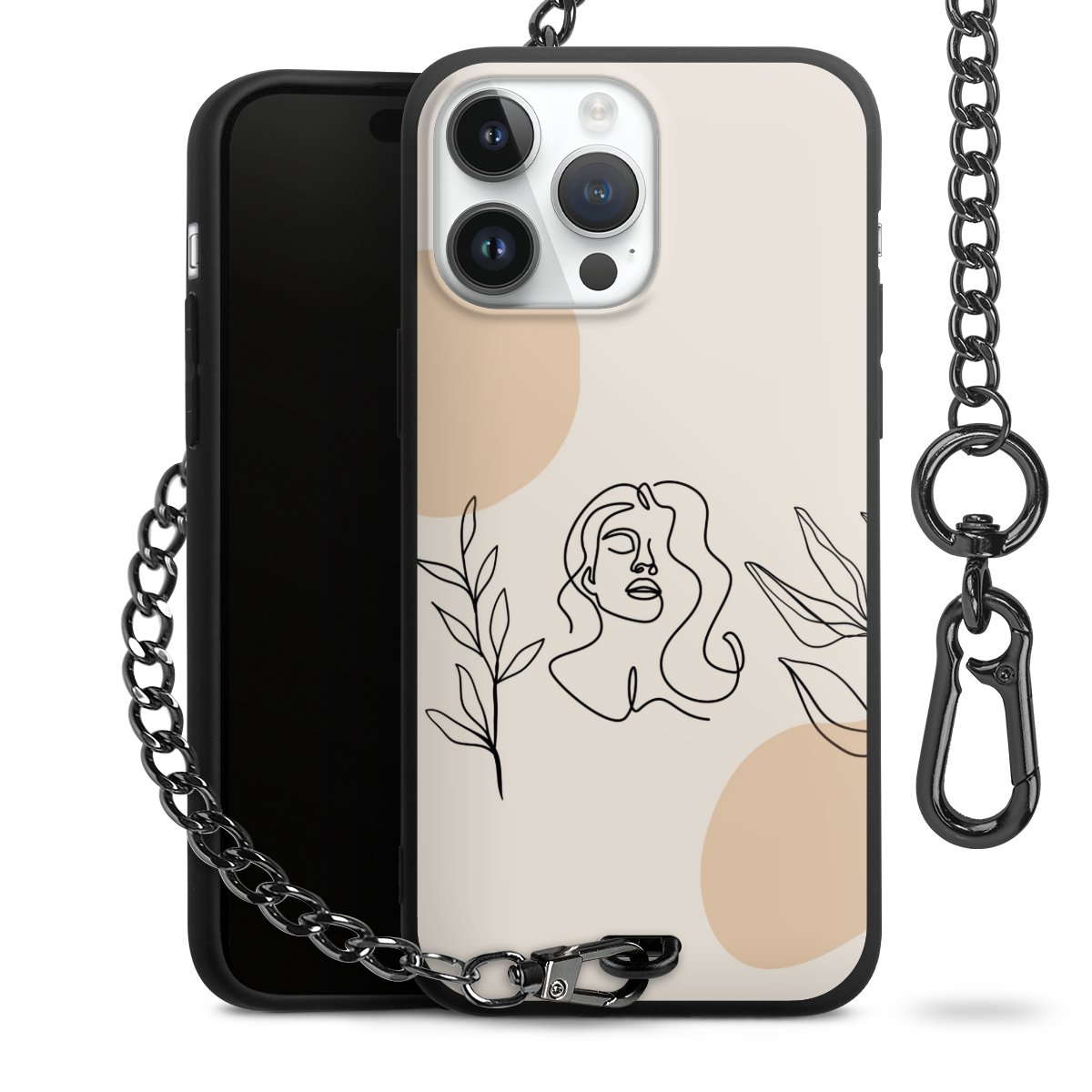 - Mattschwarze Handyhülle mit Metallkette